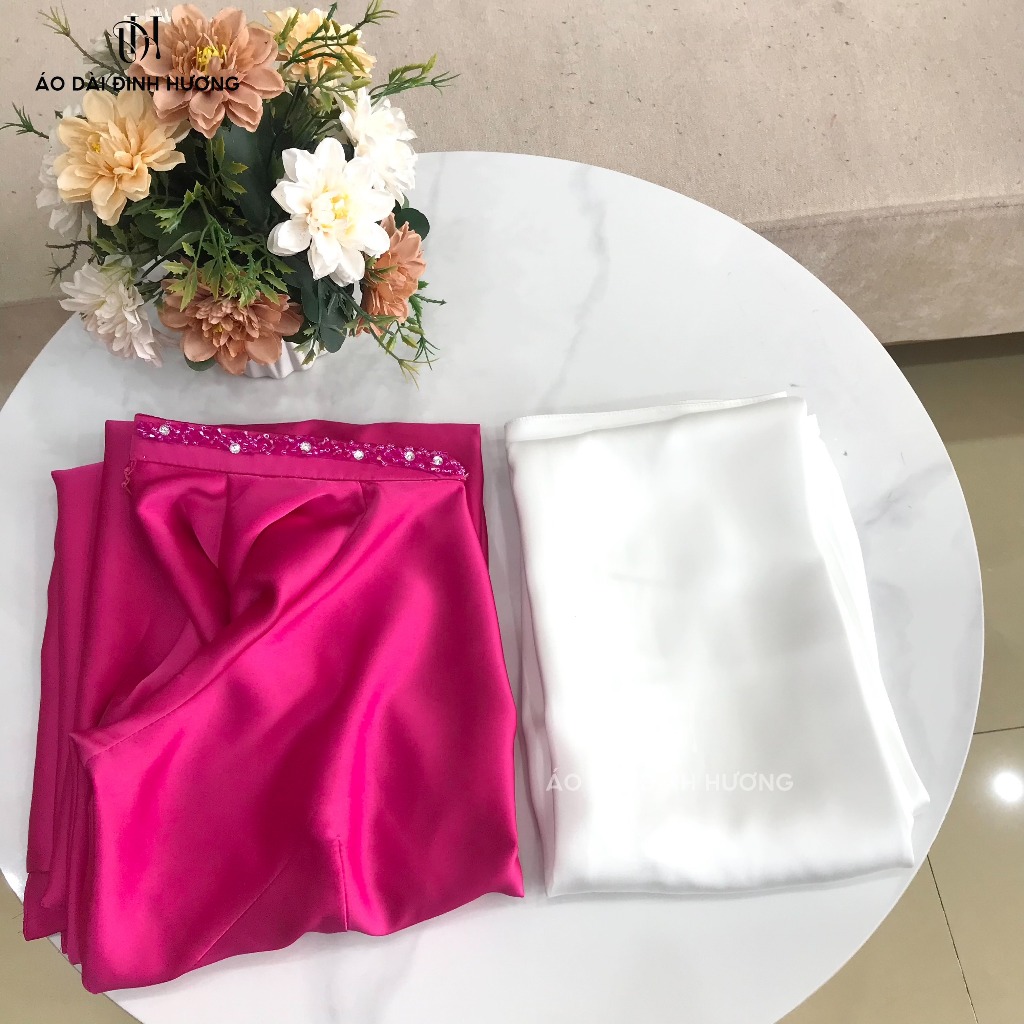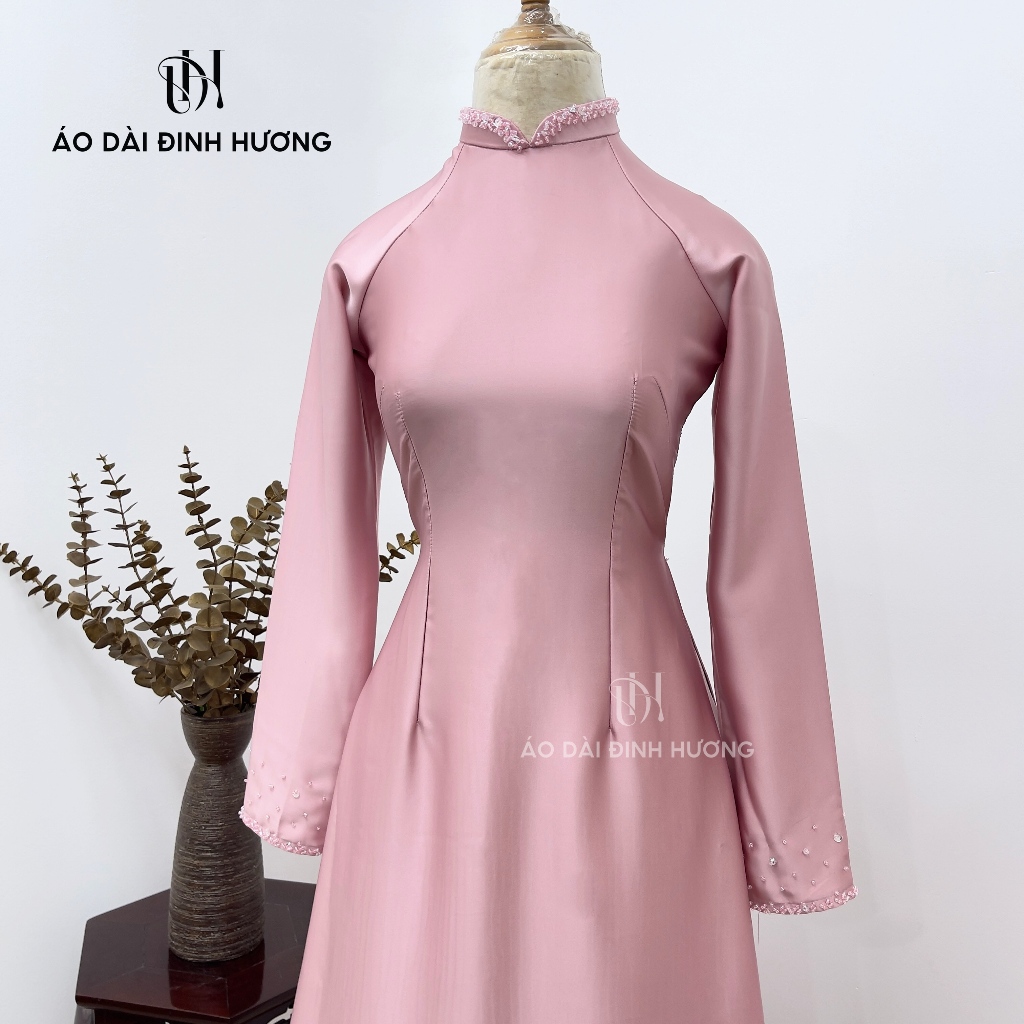 Áo dài thời trang Đinh Hương lụa tô châu kết pha lê cổ và tay áo