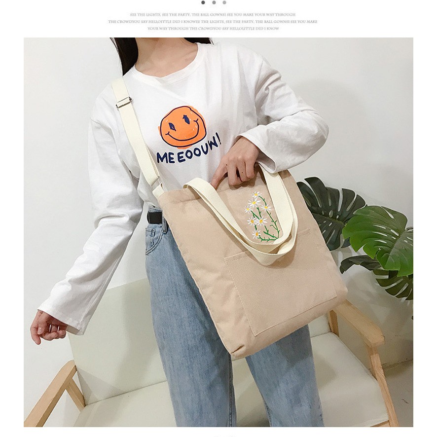 (Freeship từ 50k)MD138 - Túi tote đeo chéo thêu hoa nhí trắng
