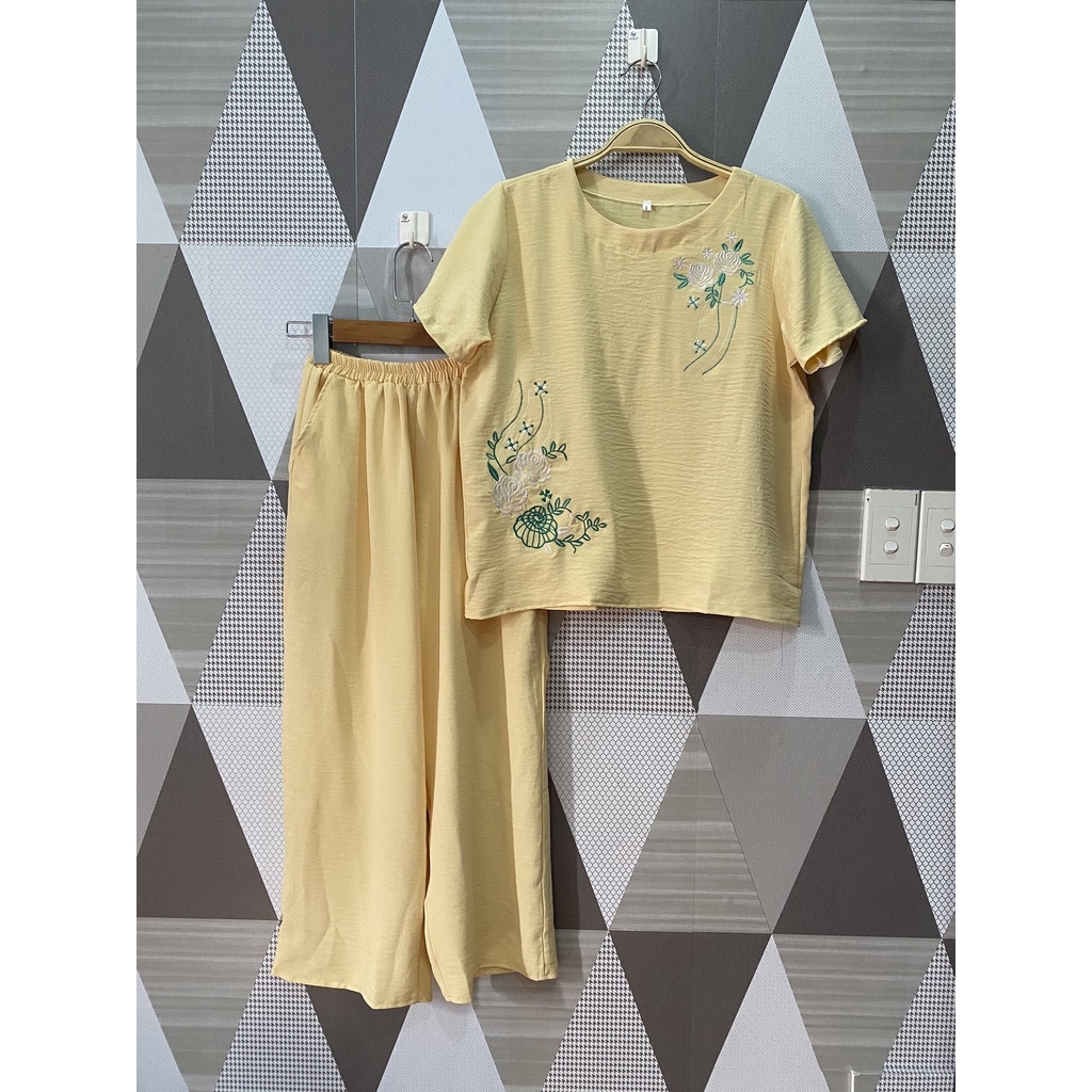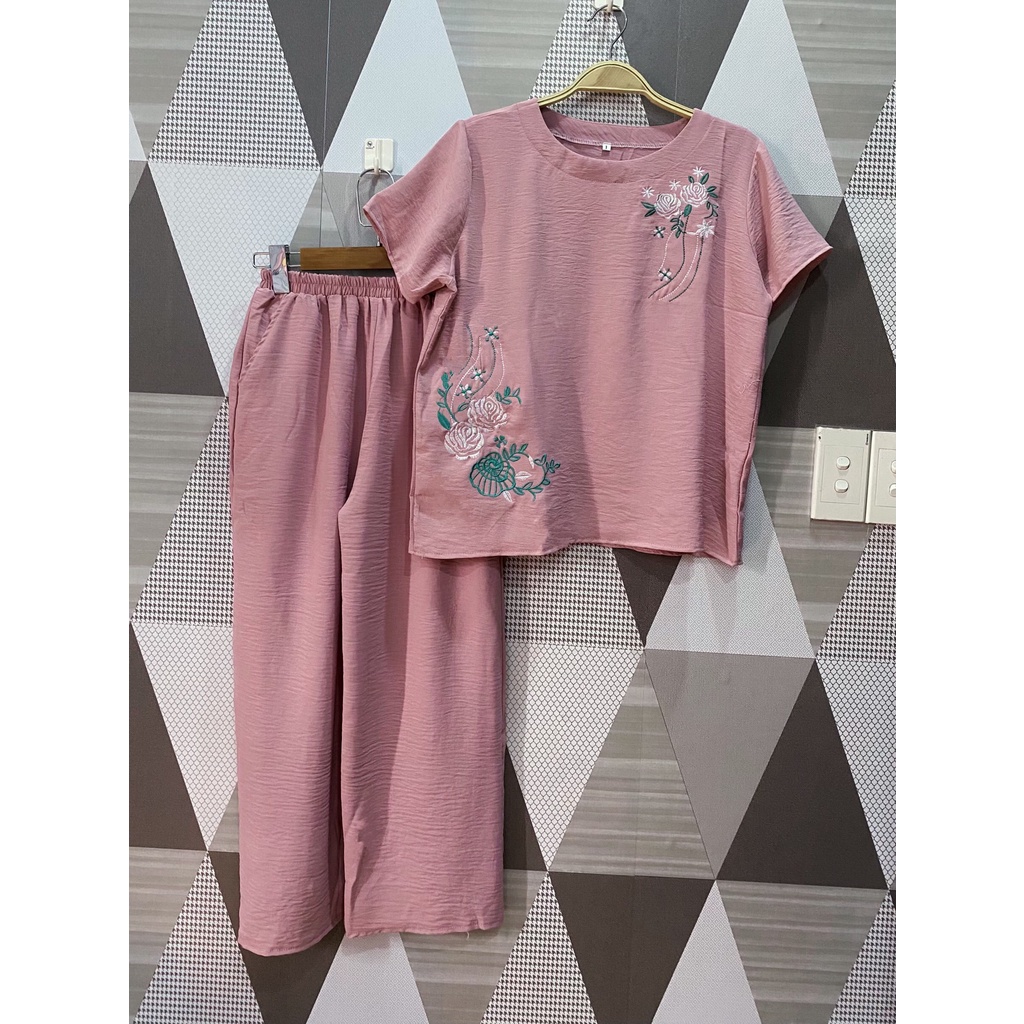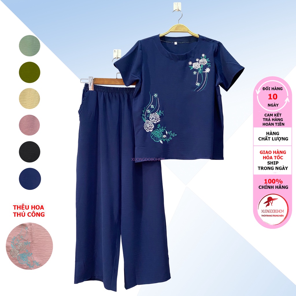 Đồ Bộ Nữ Trung Niên Quần Dài- Vải Đũi Cao Cấp, Hoa thuê, Thoáng Mát, Sang trọng-Size: 40-65kg
