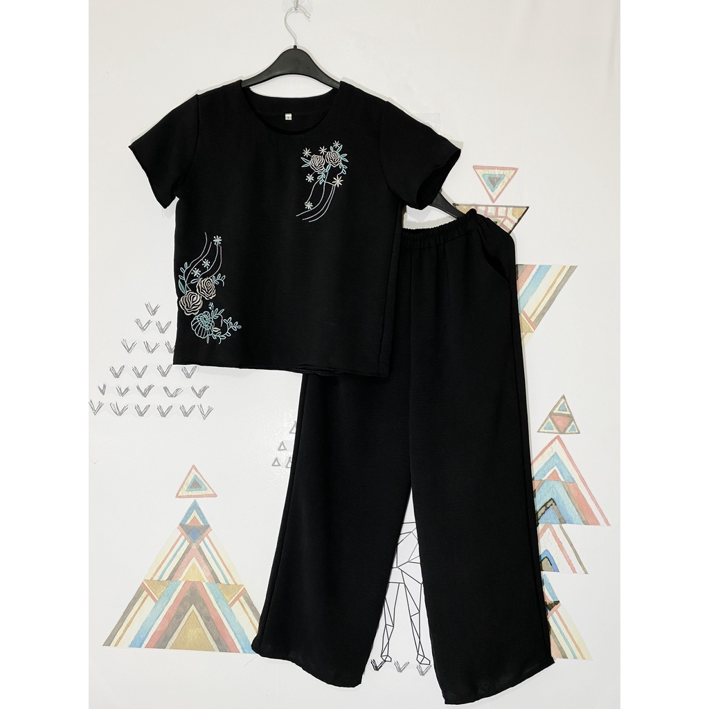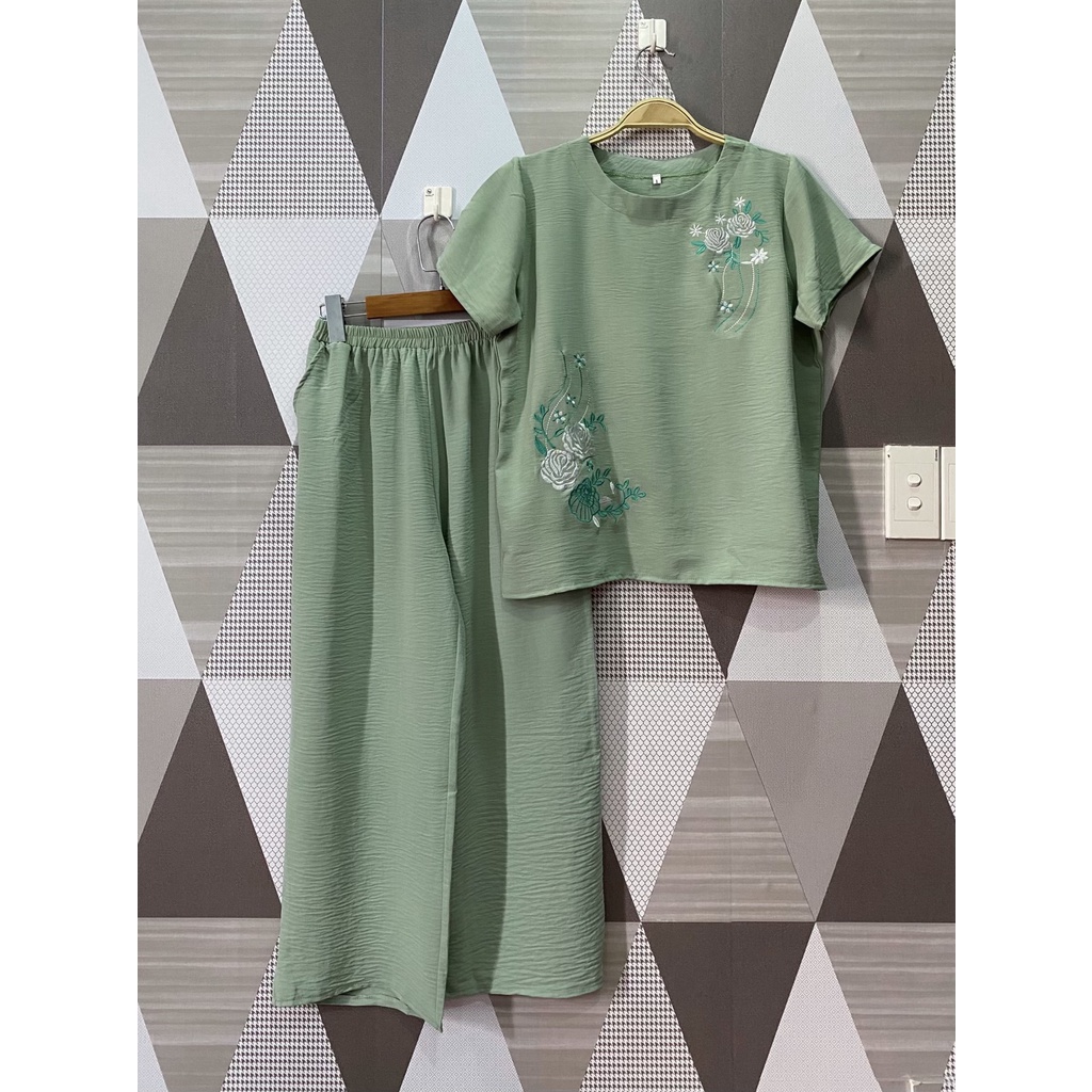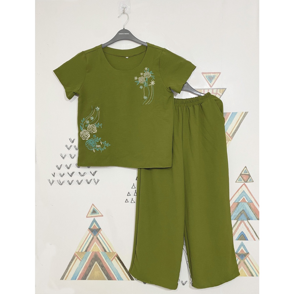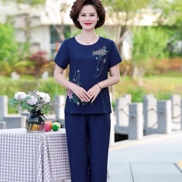 Đồ Bộ Nữ Trung Niên Quần Dài- Vải Đũi Cao Cấp, Hoa thuê, Thoáng Mát, Sang trọng-Size: 40-65kg