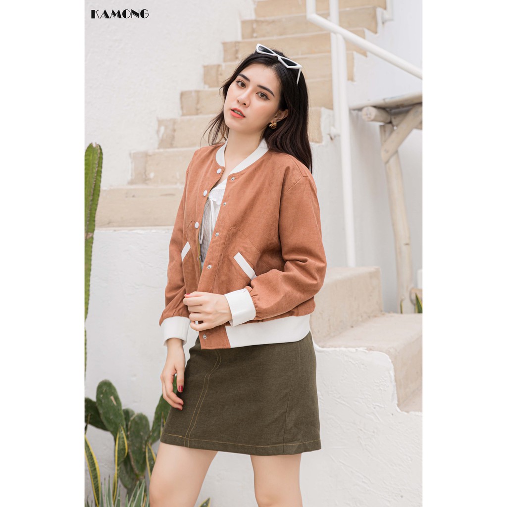 Áo khoác bomber nhung 2 lớp KAMONG A019