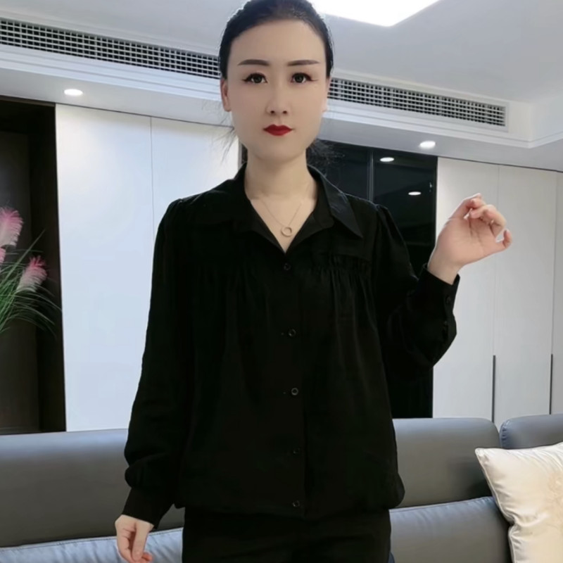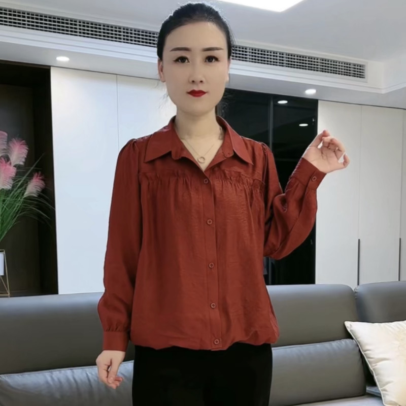 quần áo cho mẹ bộ đồ trung niên cho mẹ Áo sơ mi nữ dài tay cổ bẻ che bụng rộng rãi màu trơn áo cho mẹ trung niên trẻ trung phong cách tây mẫu mới mùa xuân 2025