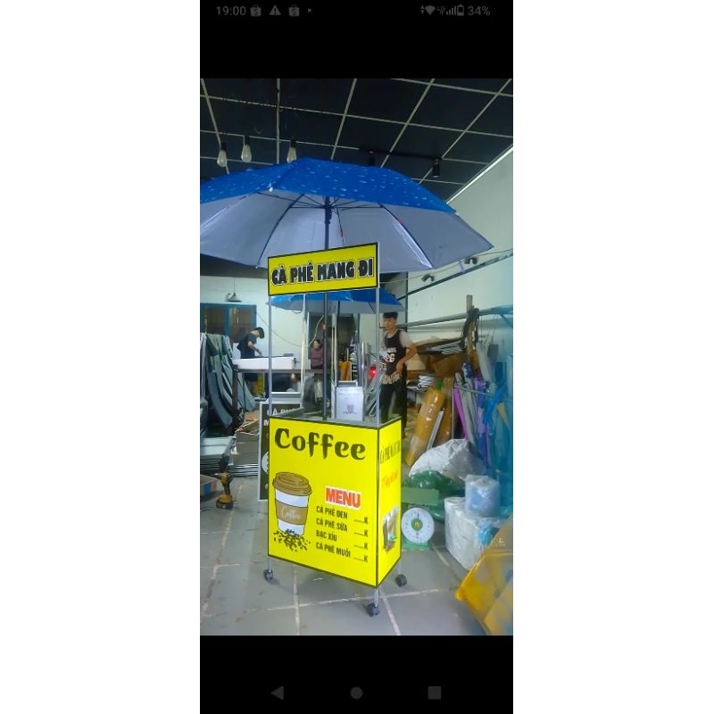 Xe Quầy Bán Cà Phê Gấp Gọn size Mini - MÀU VÀNG - 62cm x 33cm - Bạt in sẵn như Hình