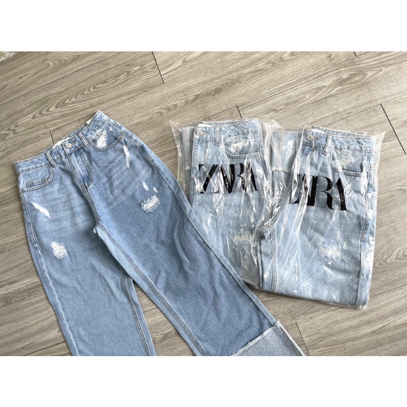 [CÓ SẴN - HÀNG XUẤT ] Quần Jeans ống rộng Zara săn gấu