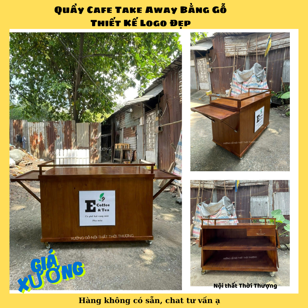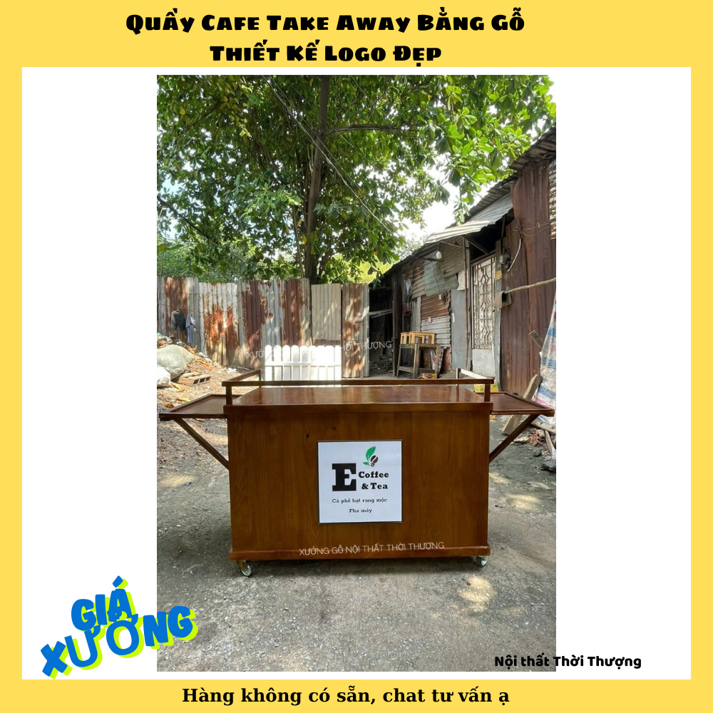 Quầy Cafe Take Away Bằng Gỗ Thiết Kế Logo Đẹp Quận 9, HCM