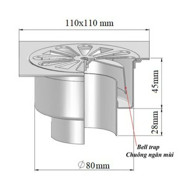Phễu thu sàn cao cấp Inox 304. Lắp đặt ống D60-90-110