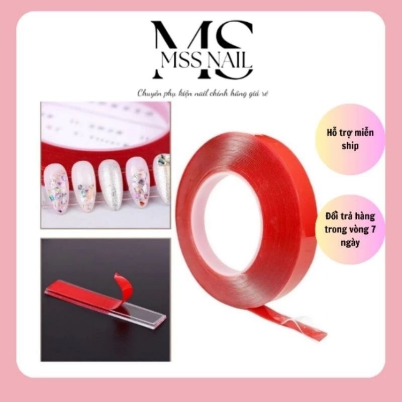 cuộn keo đỏ,băng dính hai mặc, băng dính tạo fan, cắt sẵn 30 miếng