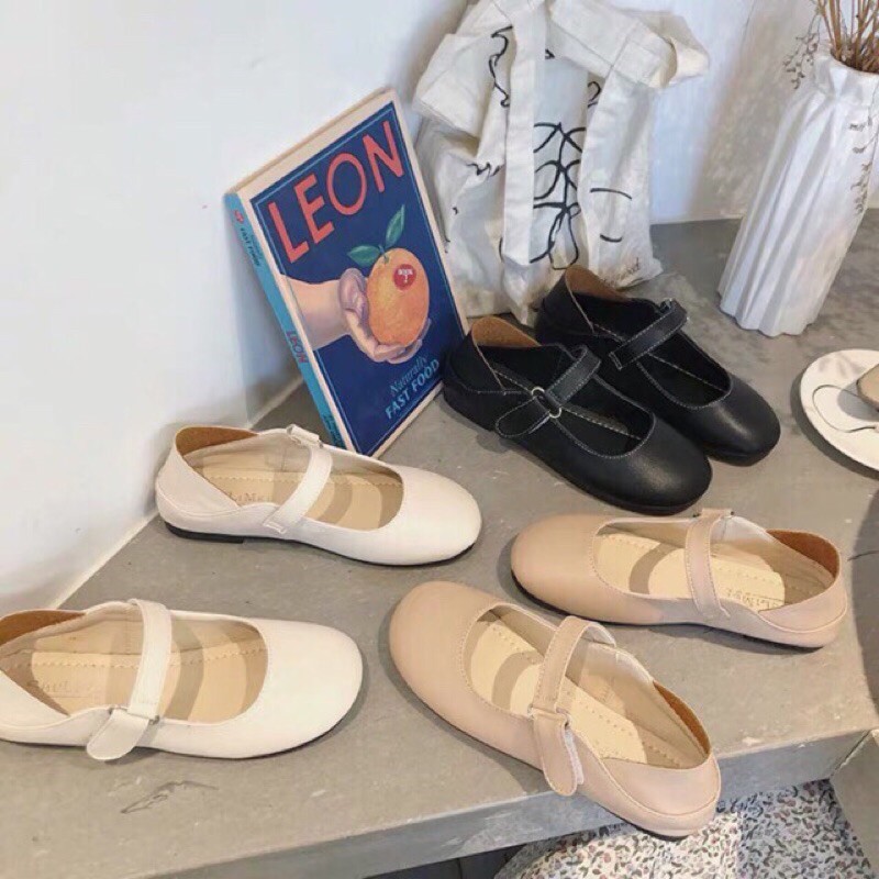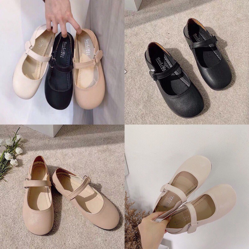 Giày Búp Bê Mũi Tròn, Đế Bằng, Da Mềm Mịn Phong Cách Vintage Hàn Quốc Có Sẵn - Mã G01
