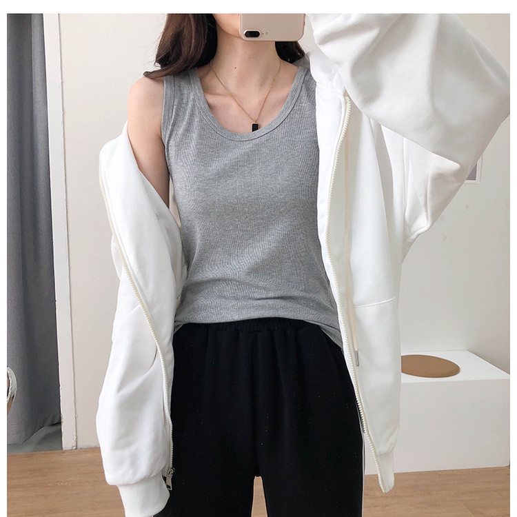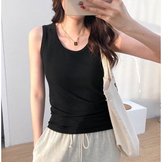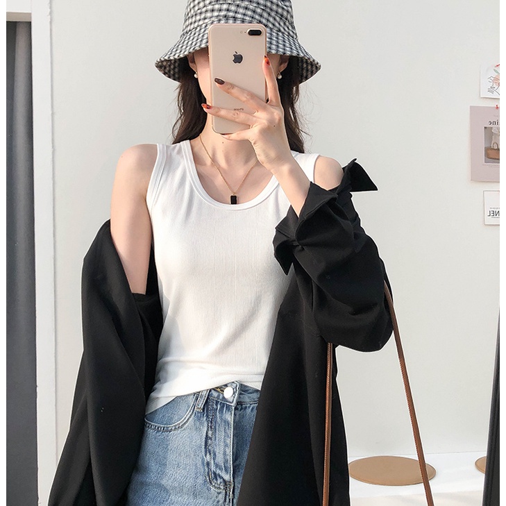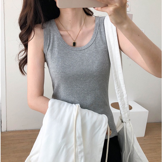 Áo ba lỗ tank top nữ HappyFamily form rộng trơn vải cotton 100 cao cấp mềm mịn