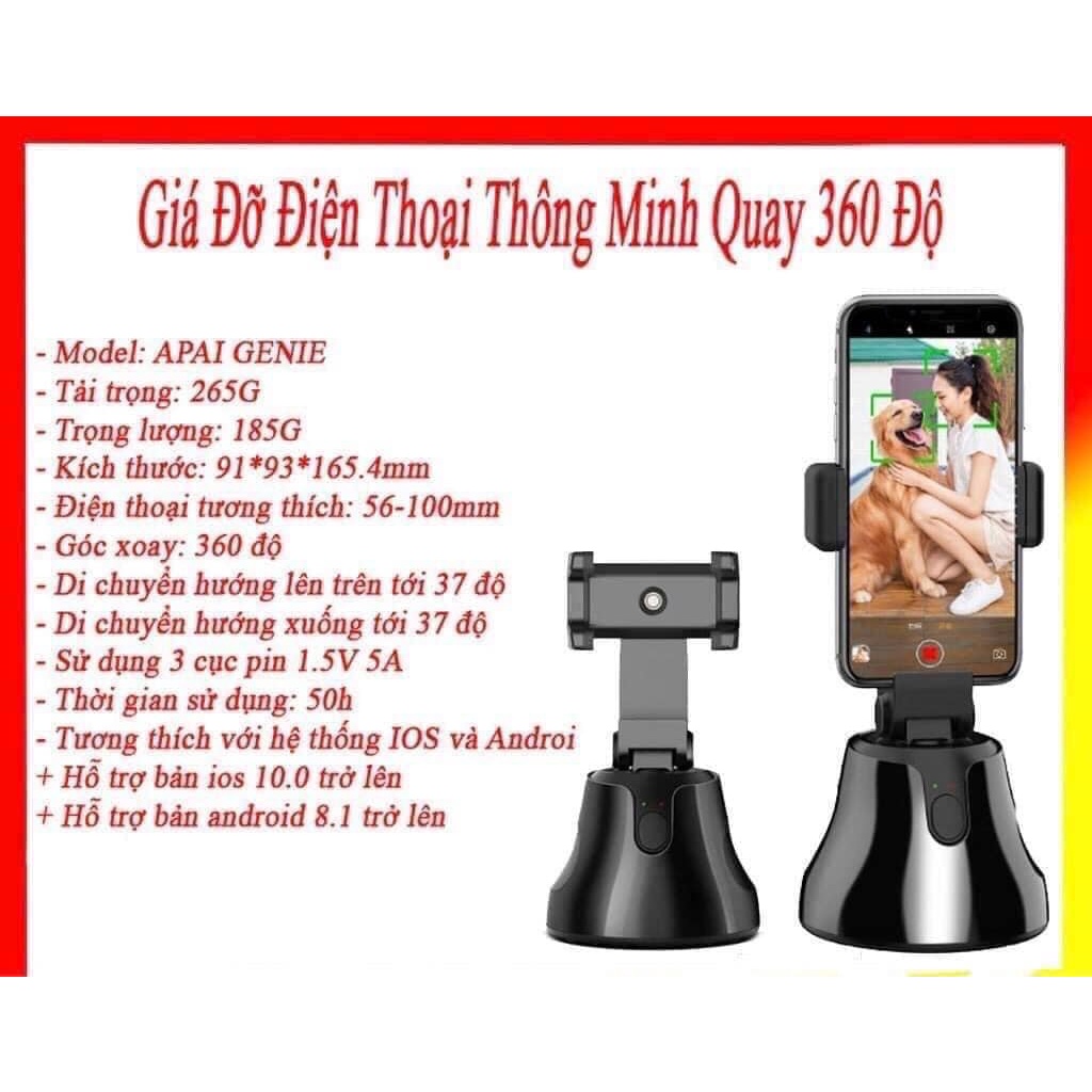 Gậy Chụp Ảnh Quay Video Tự Động 360 Độ Thông Minh - Xoay Tự Động Theo Dõi Khuôn Mặt - TẶNG KÈM GIÁ ĐỠ