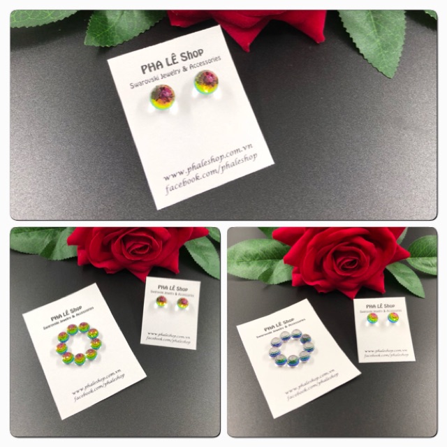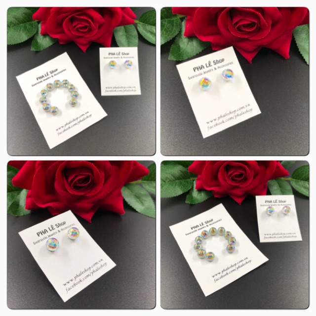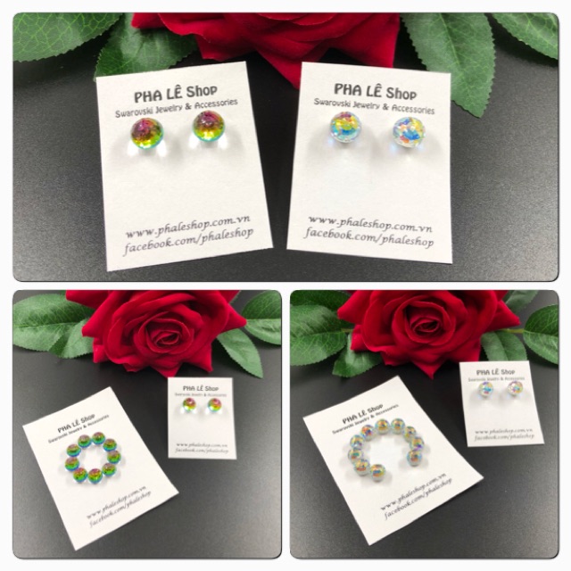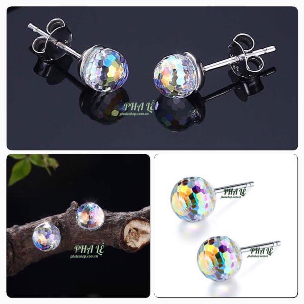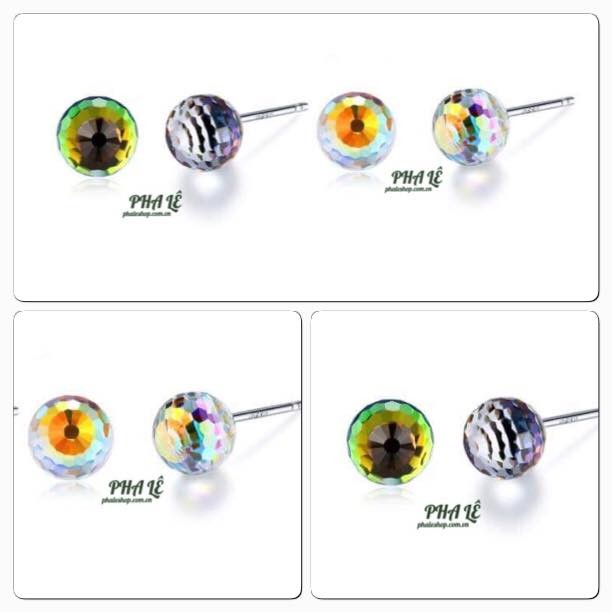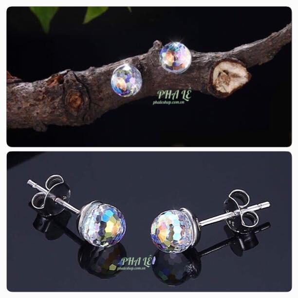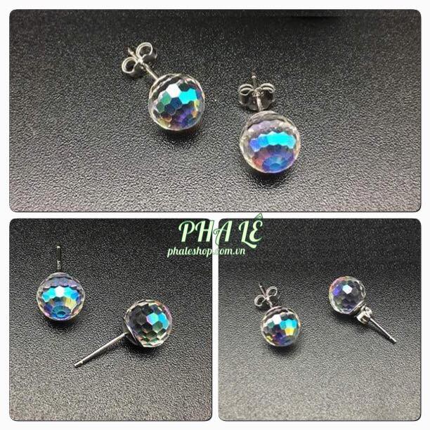 Bông Tai Pha Lê Tròn Dát Chiếu Size 08mm
