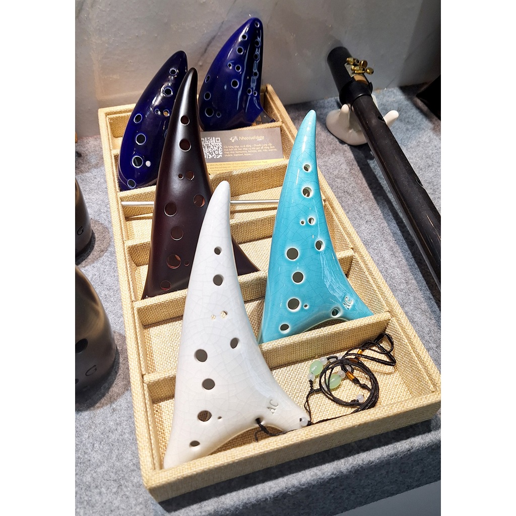 Sáo Đất Ocarina 12 Lỗ Chất Liệu Gốm Sứ Xanh Thiên Thanh Nứt Tone AC