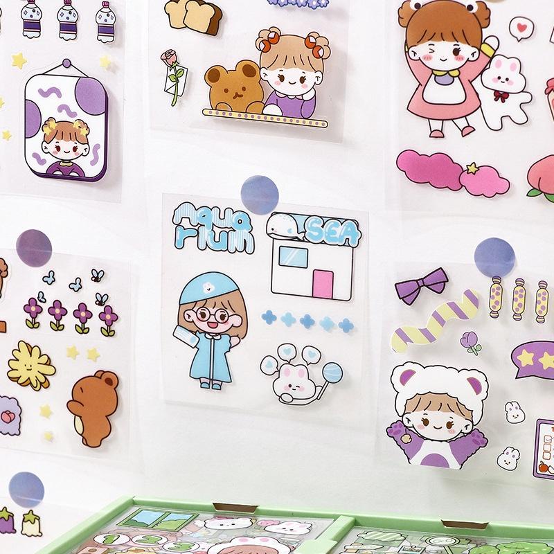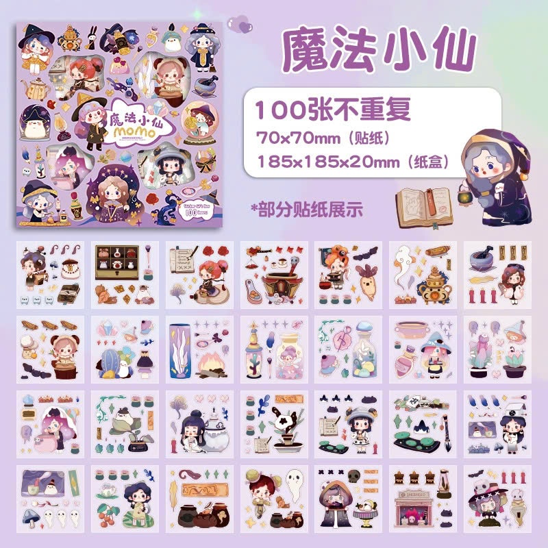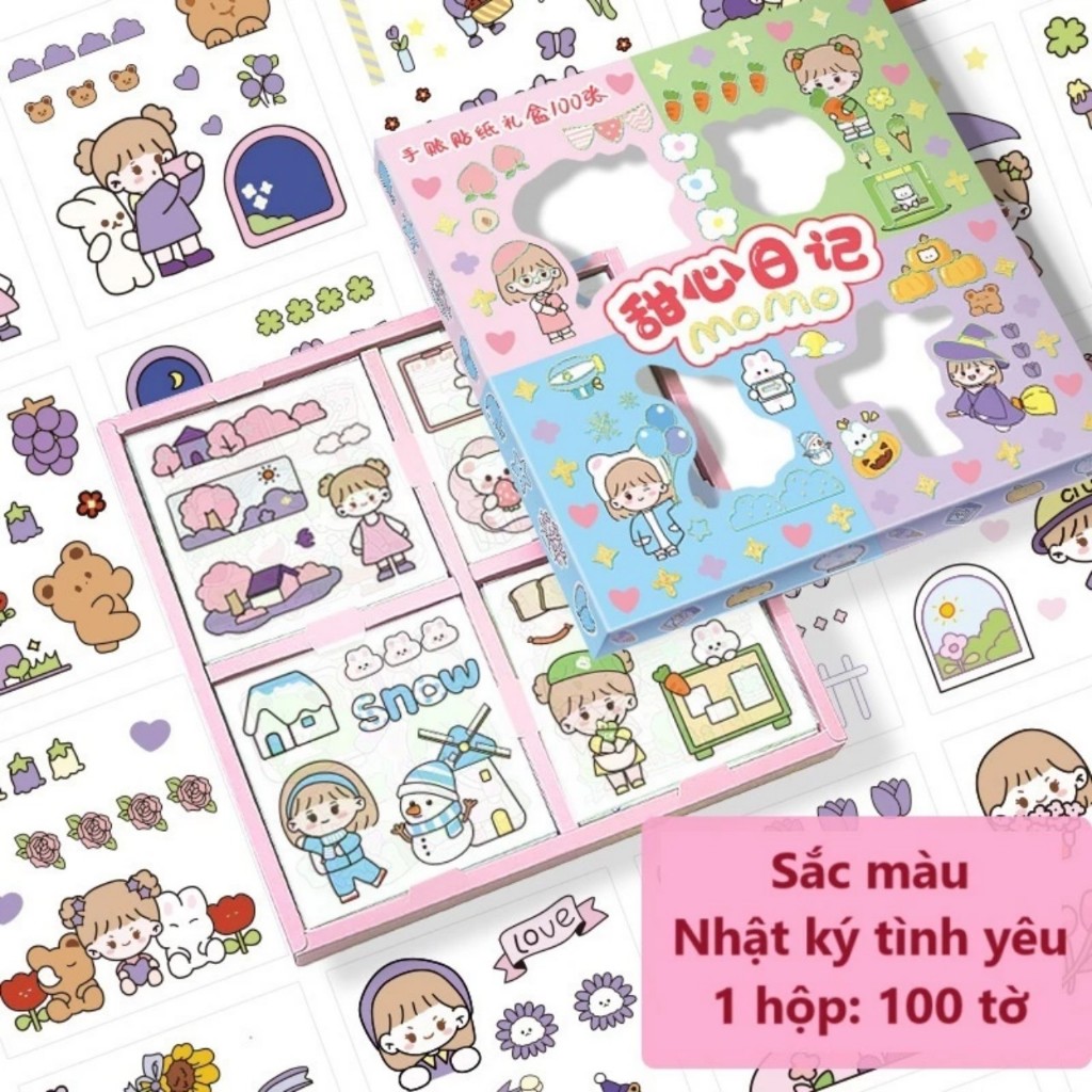 PVN45108 set hộp 100 tấm sticker 1000 hình dán chống nước nhiều phong cách cute dễ thương