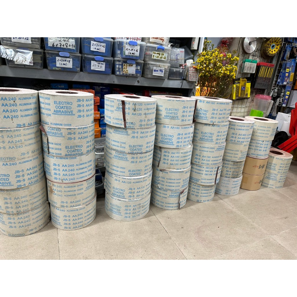 Nhám vải JB5 khổ 10 cm, giấy giáp vải đỏ AA cuộn 40 mét đủ loại hạt....