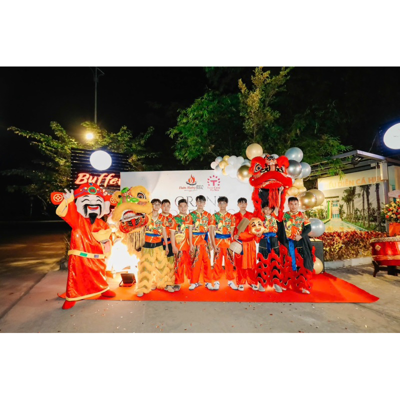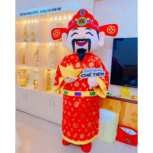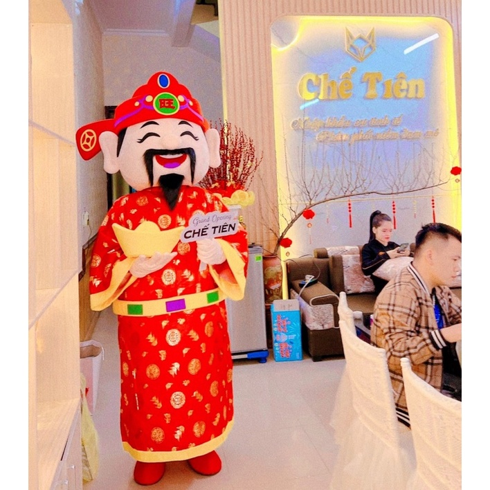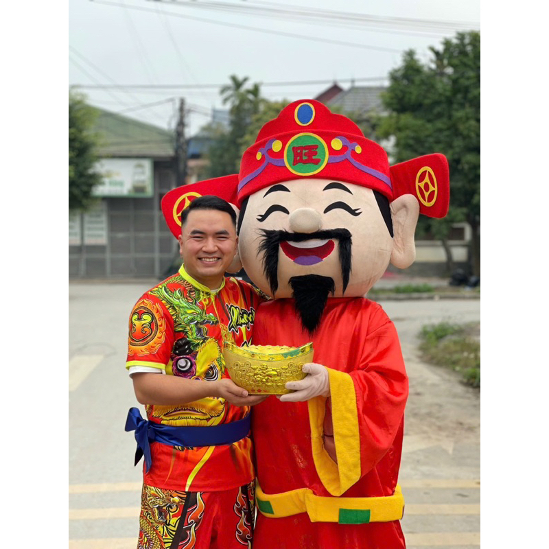 Mascot thần tài siêu bự có thỏi vàng quần áo lụa