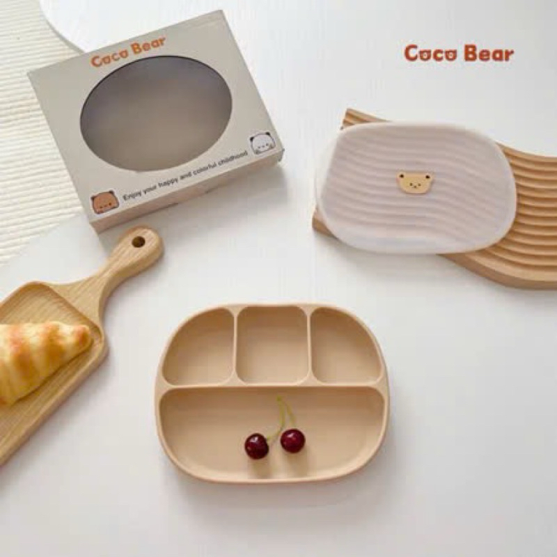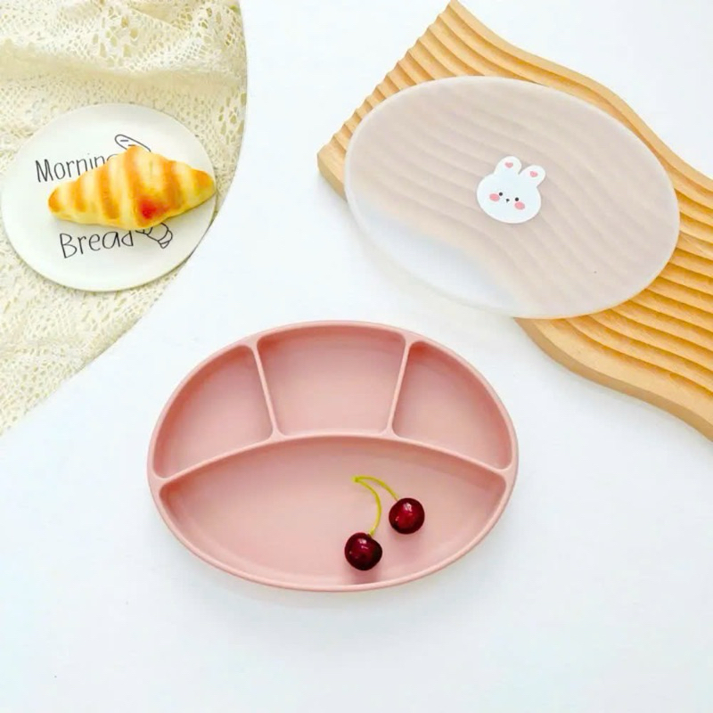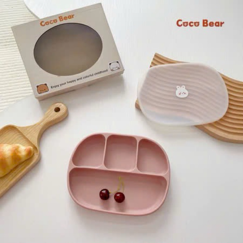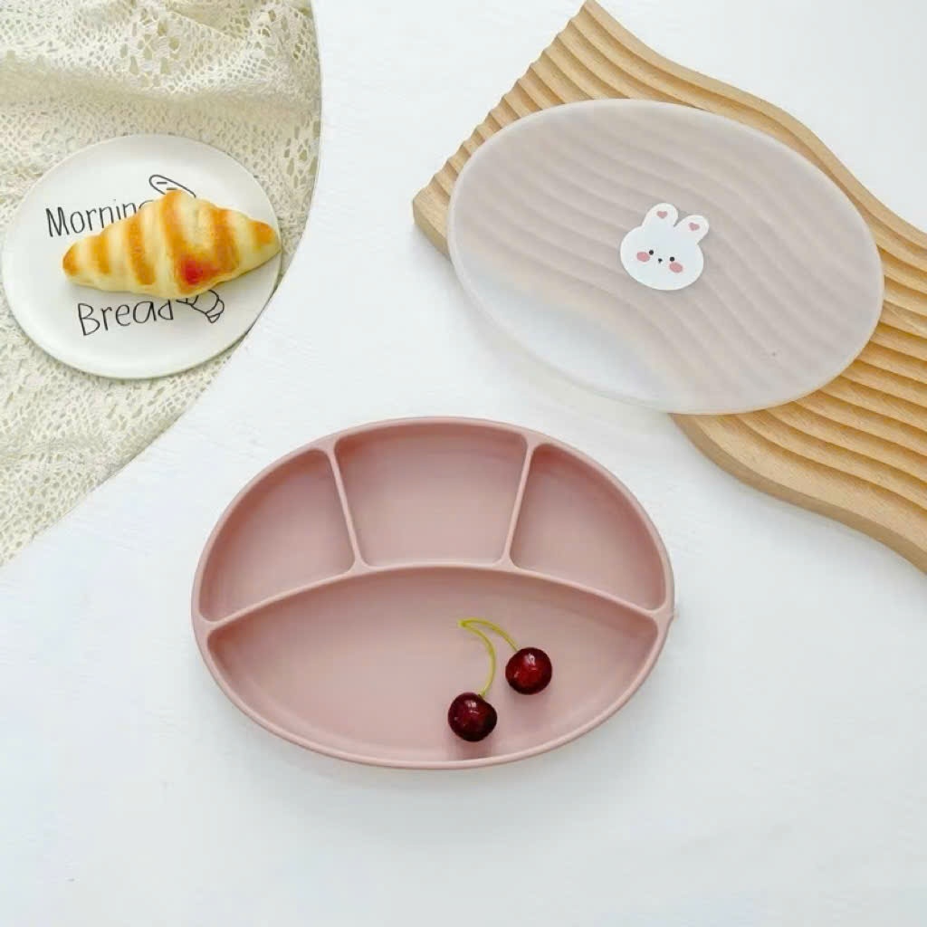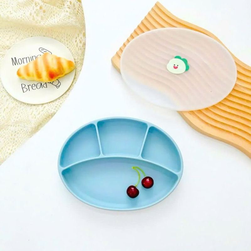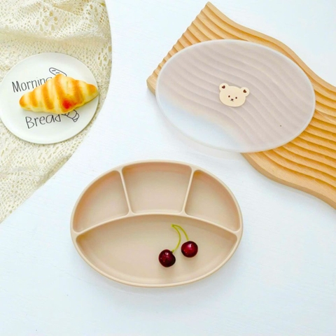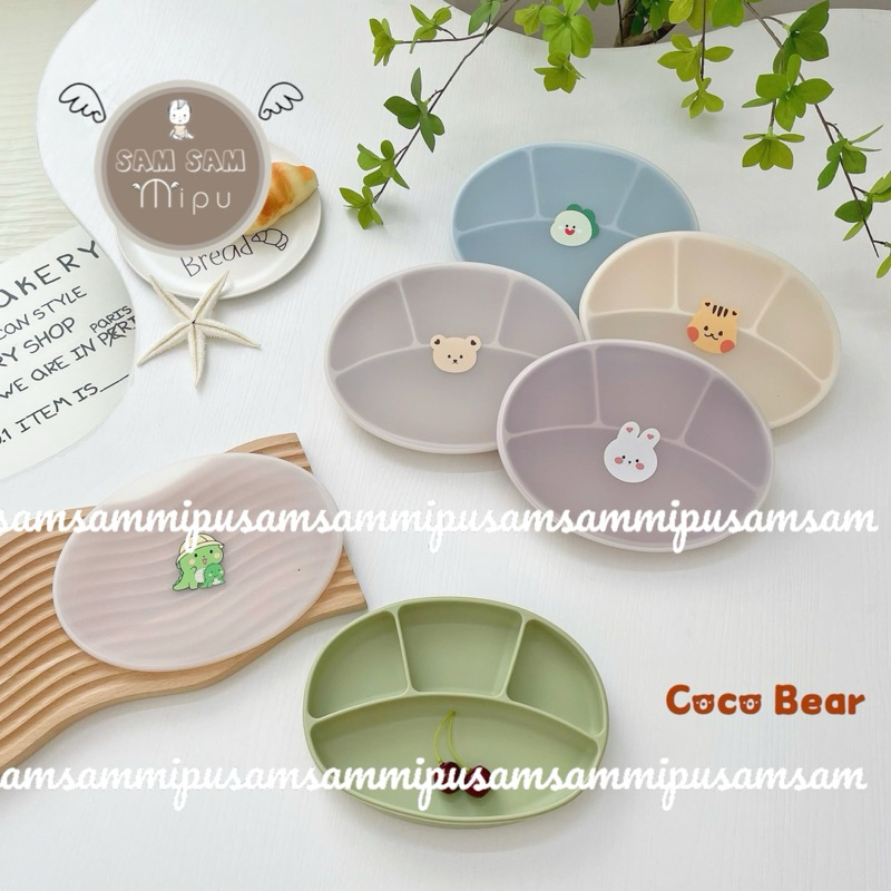 [COCOBEAR] Ảnh thật khay ăn dặm silicon cao cấp Oval 4 ngăn màu Pastel có đế hít chống đổ, Không Chứa BPA- Shop Mẹ Sam