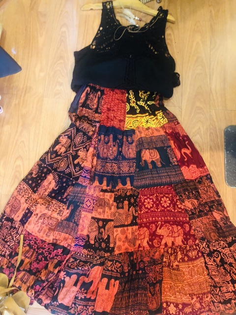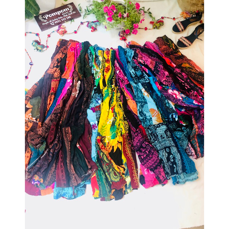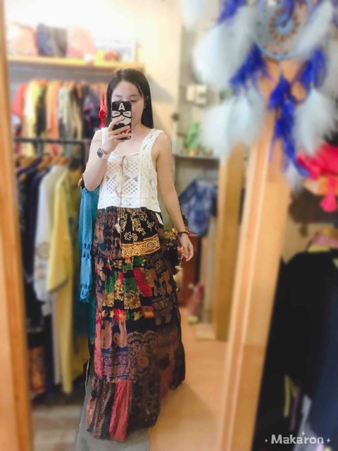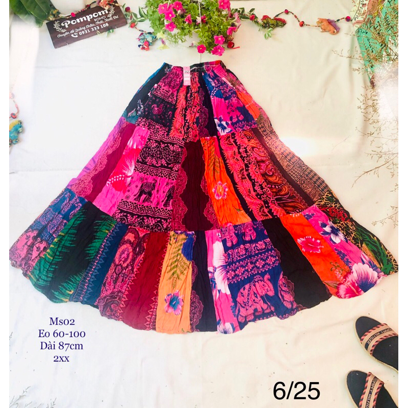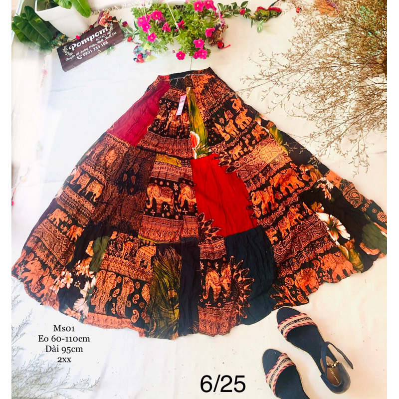 Chân váy thổ cẩm boho style freesize,cotton mềm rũ hoa văn ngẫu nhiên