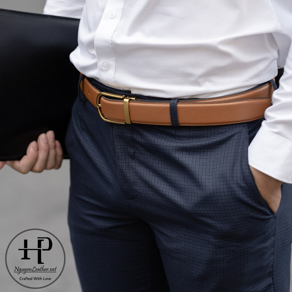 Thắt Lưng Nam Da Safiano Nhập Khẩu Đục Lỗ Cài - SAFIANO