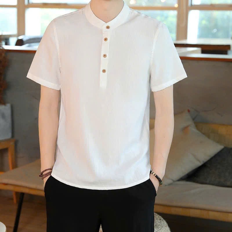 ÁO SƠ MI NAM TAY NGẮN CỔ TÀU VẢI ĐŨI THÁI LINEN CAO CẤP DÀY ĐẸP MẶC MÁT- ÁO ĐŨI MEN WIN TX2