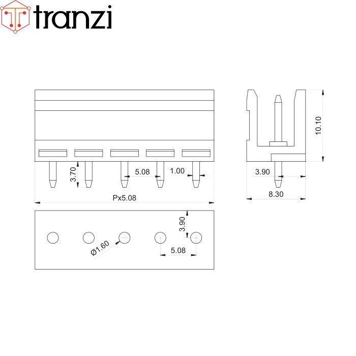 Cầu đấu 5.08mm 2EDG5.08 3P bộ đực cái chân cắm thẳng xanh - túi 5 bộ đực cái