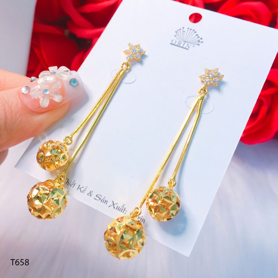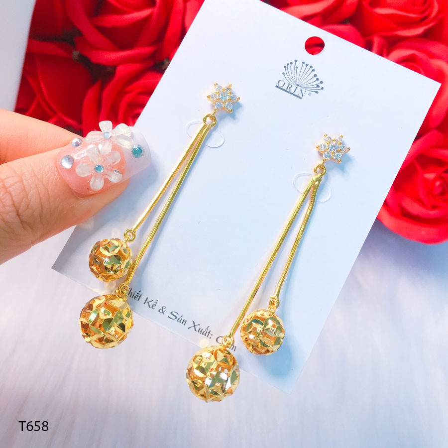 Bông tai nữ, khuyên tai dáng dài trái kim tiền tài lộc đính đá cao cấp Orin T658