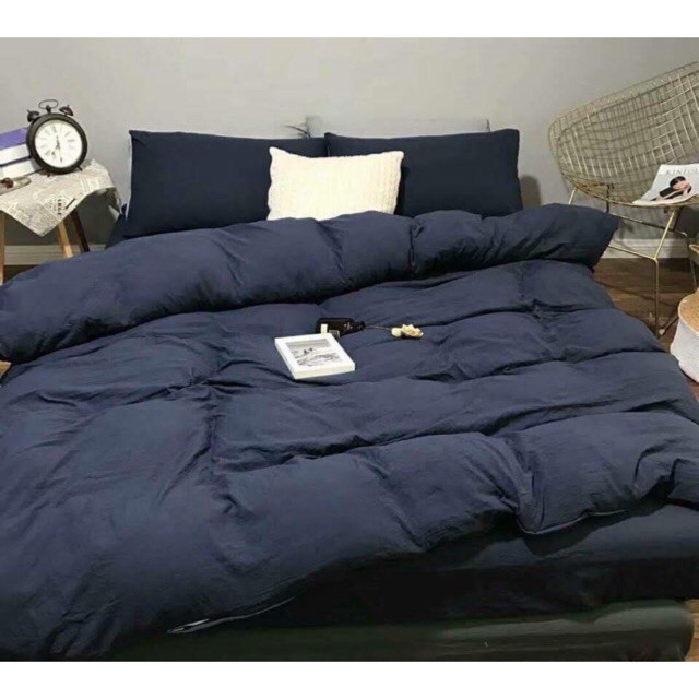 Bộ Chăn Ga Gối Đũi Mẫu Xanh Than Trơn