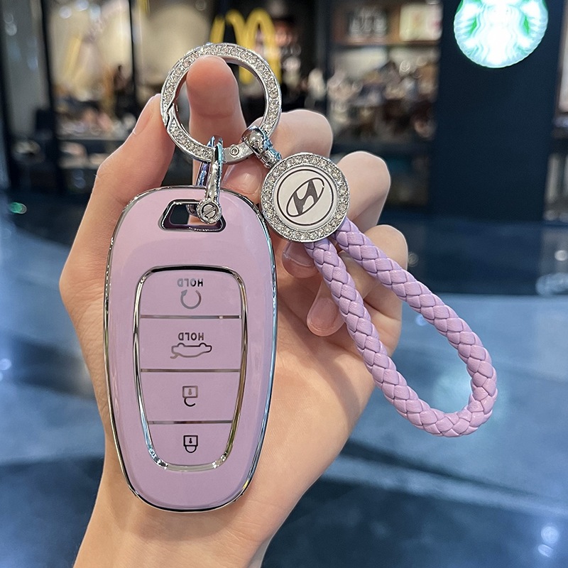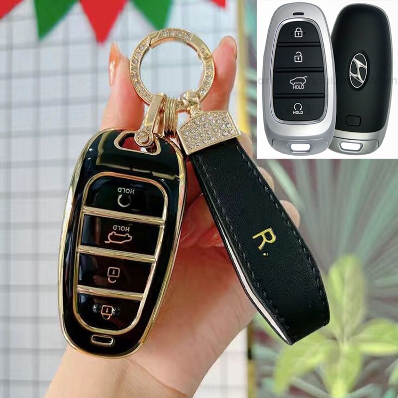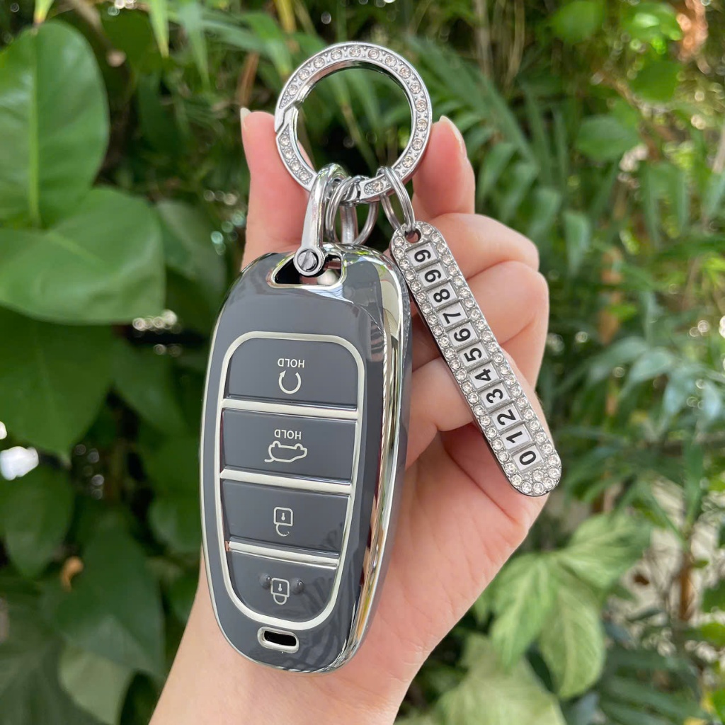 Ốp chìa khoá TPU - Viền Bạc Cho Xe Hyundai Tucson 2022-2024, Santafe 2021-2022-2023-2024