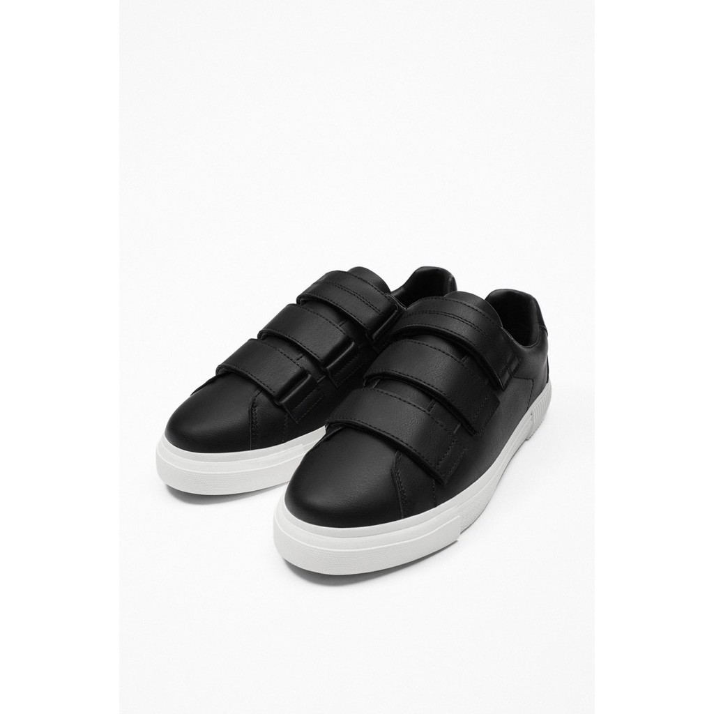 Giày sneaker Zara chính hãng Quai dán Velcro Đen Da - Black Leather
