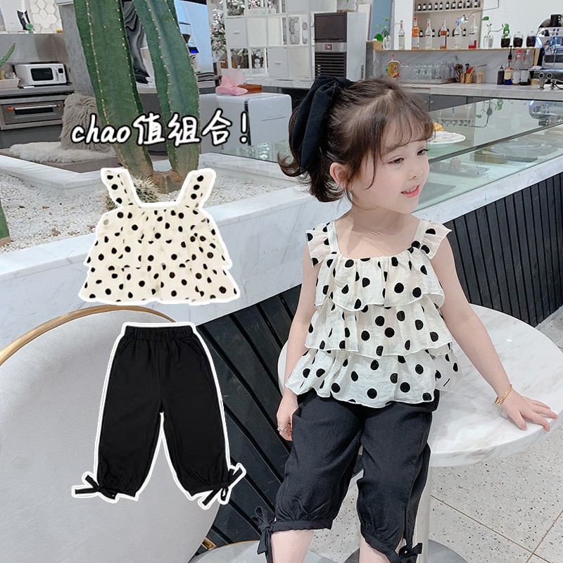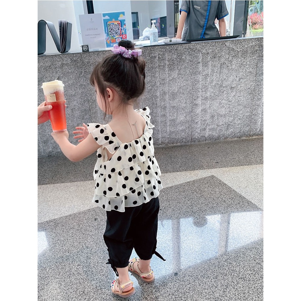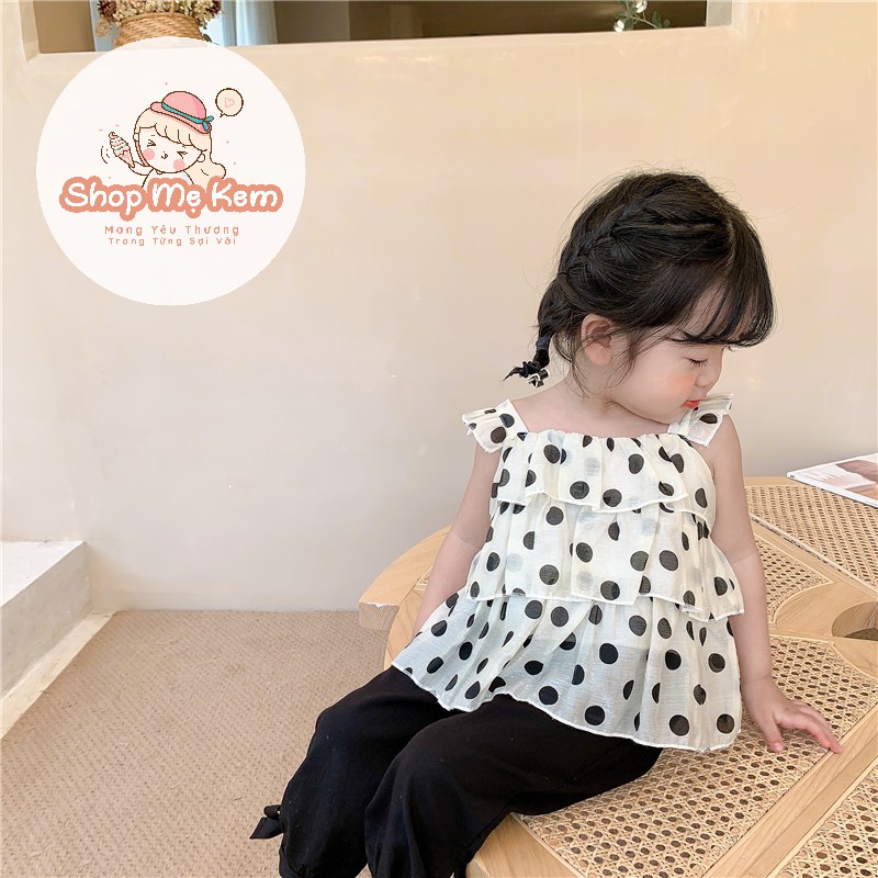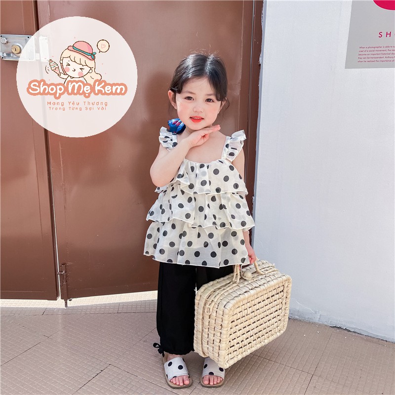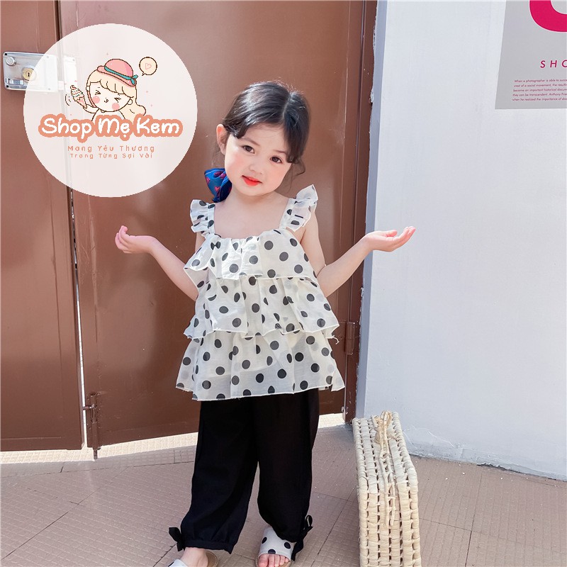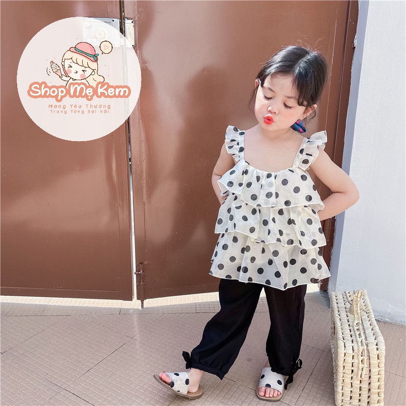 Set Bé Gái Chấm Bi Style Hàn Vải Voan Mềm Mịn Mát Kèm Ảnh Thật