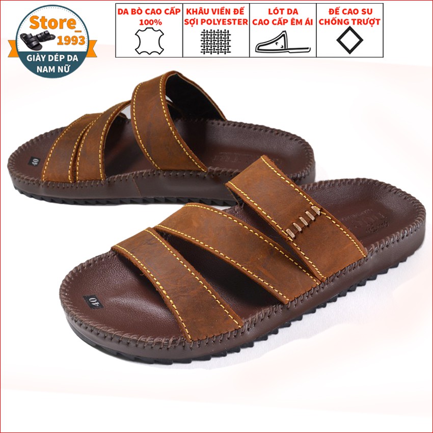 Dép Nam Quai Ngang, Dép Quai Chép Nam Da Bò Cao Cấp V22