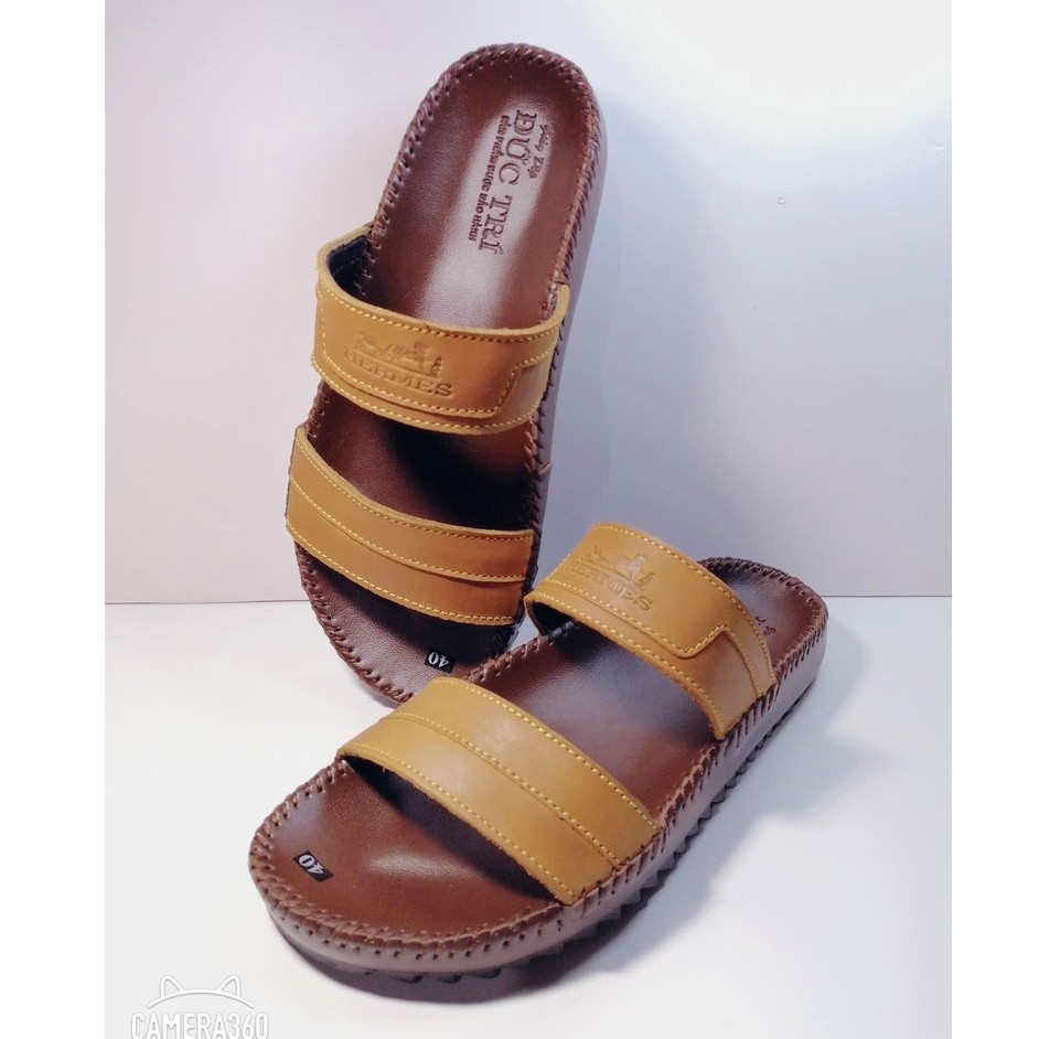 Dép Nam Quai Ngang, Dép Da Bò Cao Cấp Đế Khâu Viền Chắc Chắn 65V35