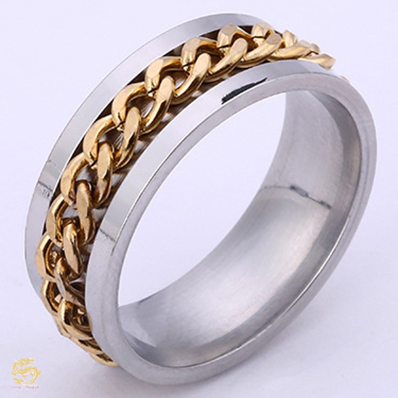 Nhẫn bằng thép titan phối dây xích có thể xoay phong cách cá tính cho nam