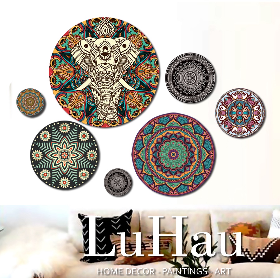 Bộ tranh tròn decor Luhau Bohemian, tranh dán tường tạo hình không cần khoan tường
