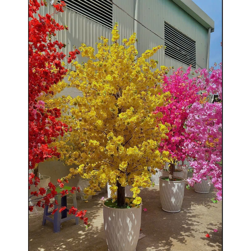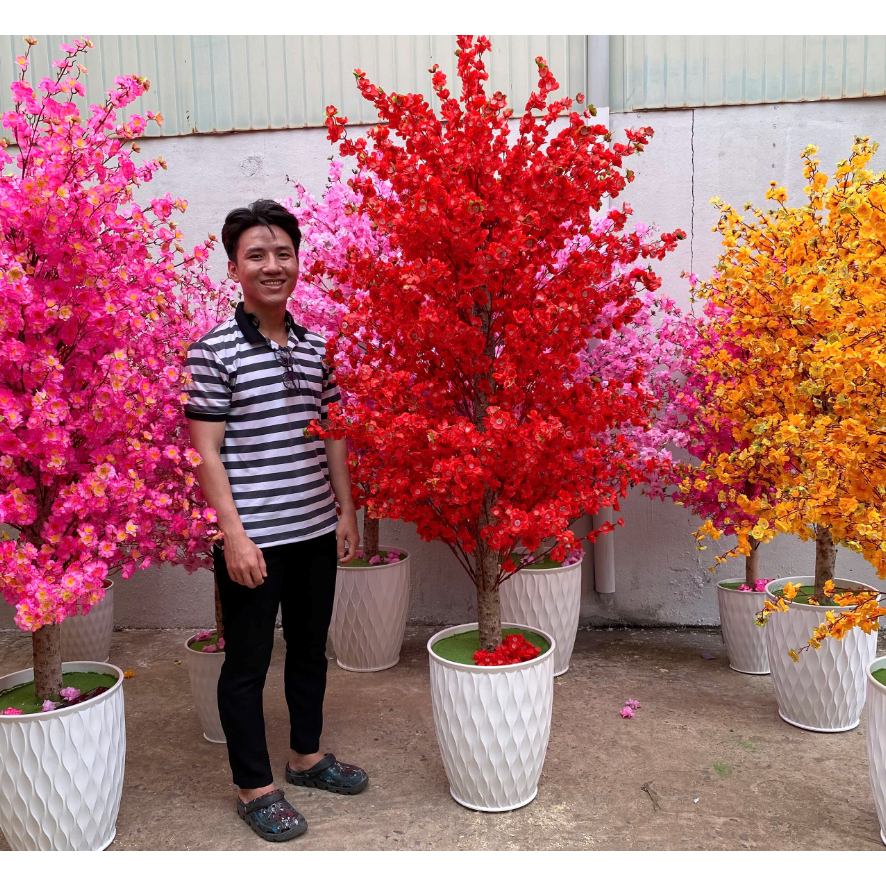 Cây mai giả, cây đào giả--có kèm Chậu như hình- HOẢ TỐC( LÀM CÂY THEO YÊU CẦU )