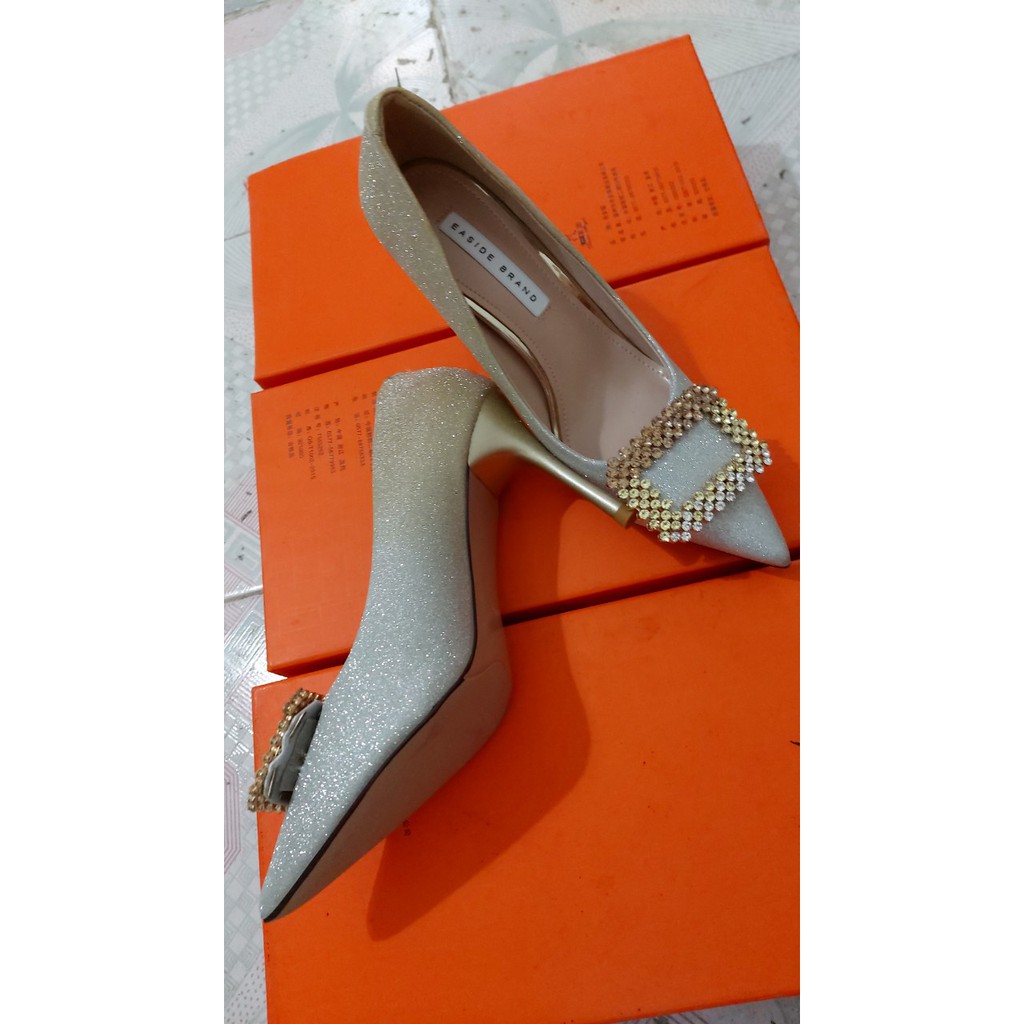 giày cao gót đính kim tuyến, kèm ảnh thật