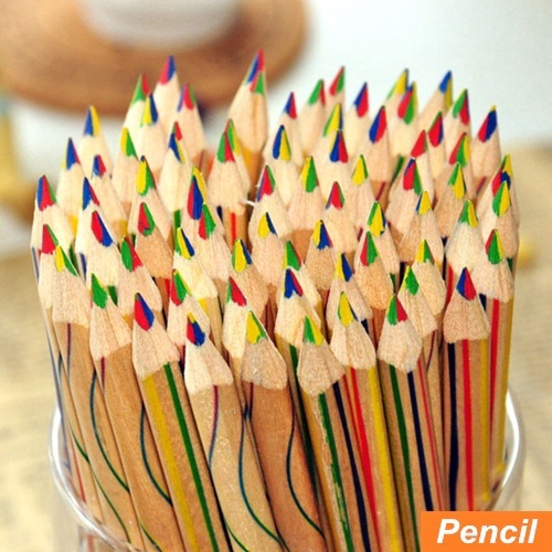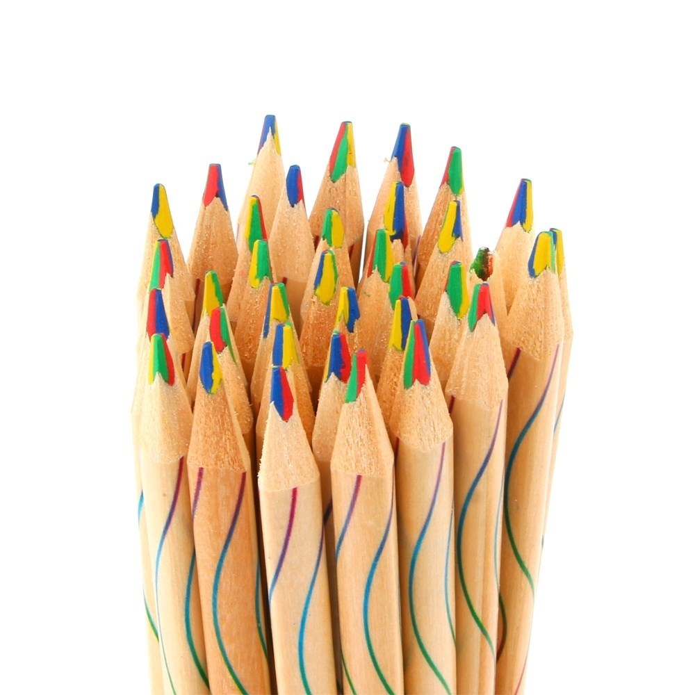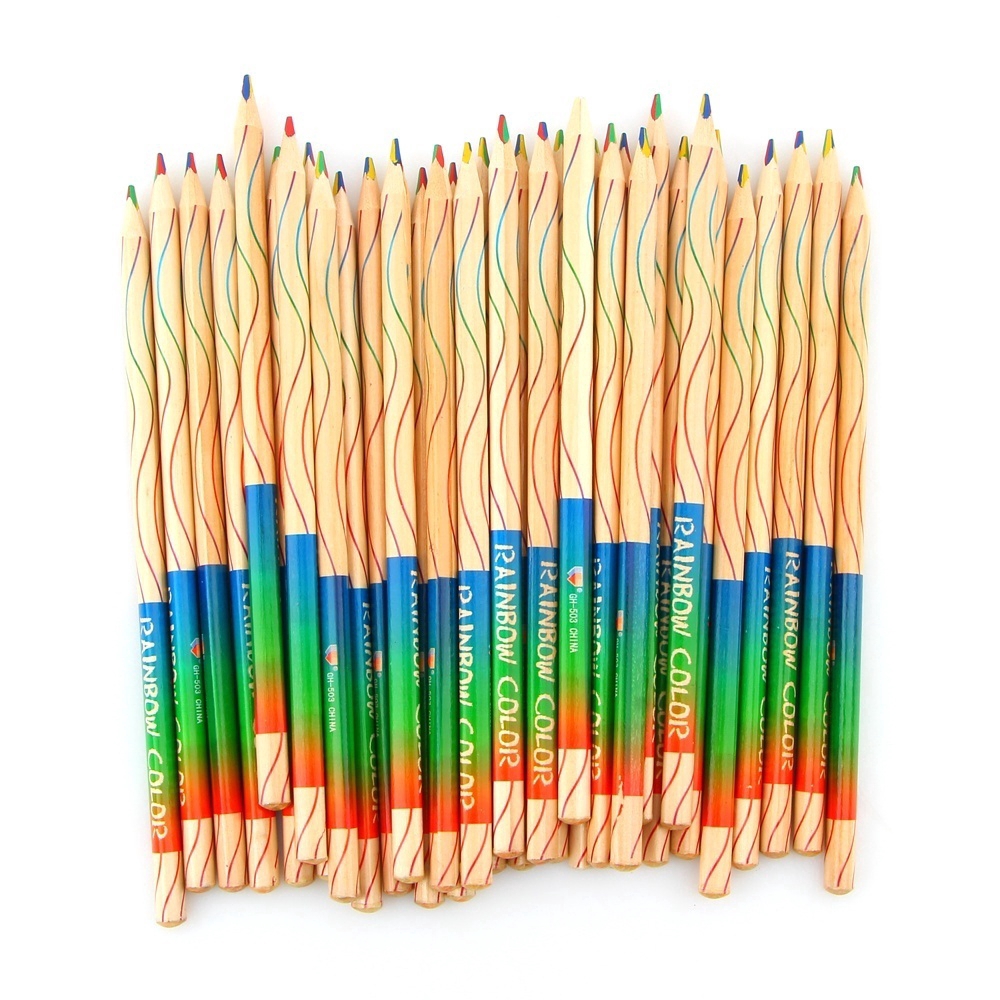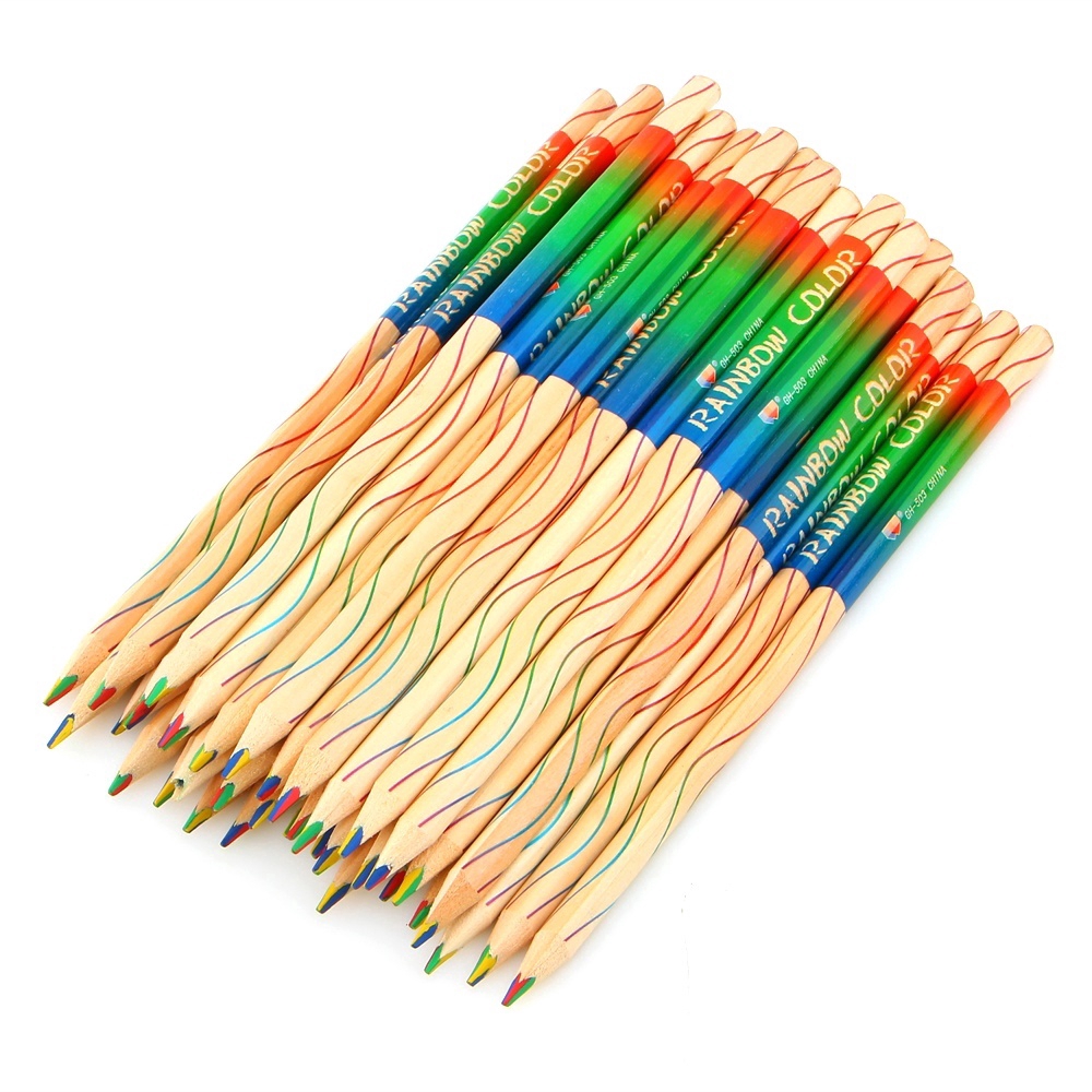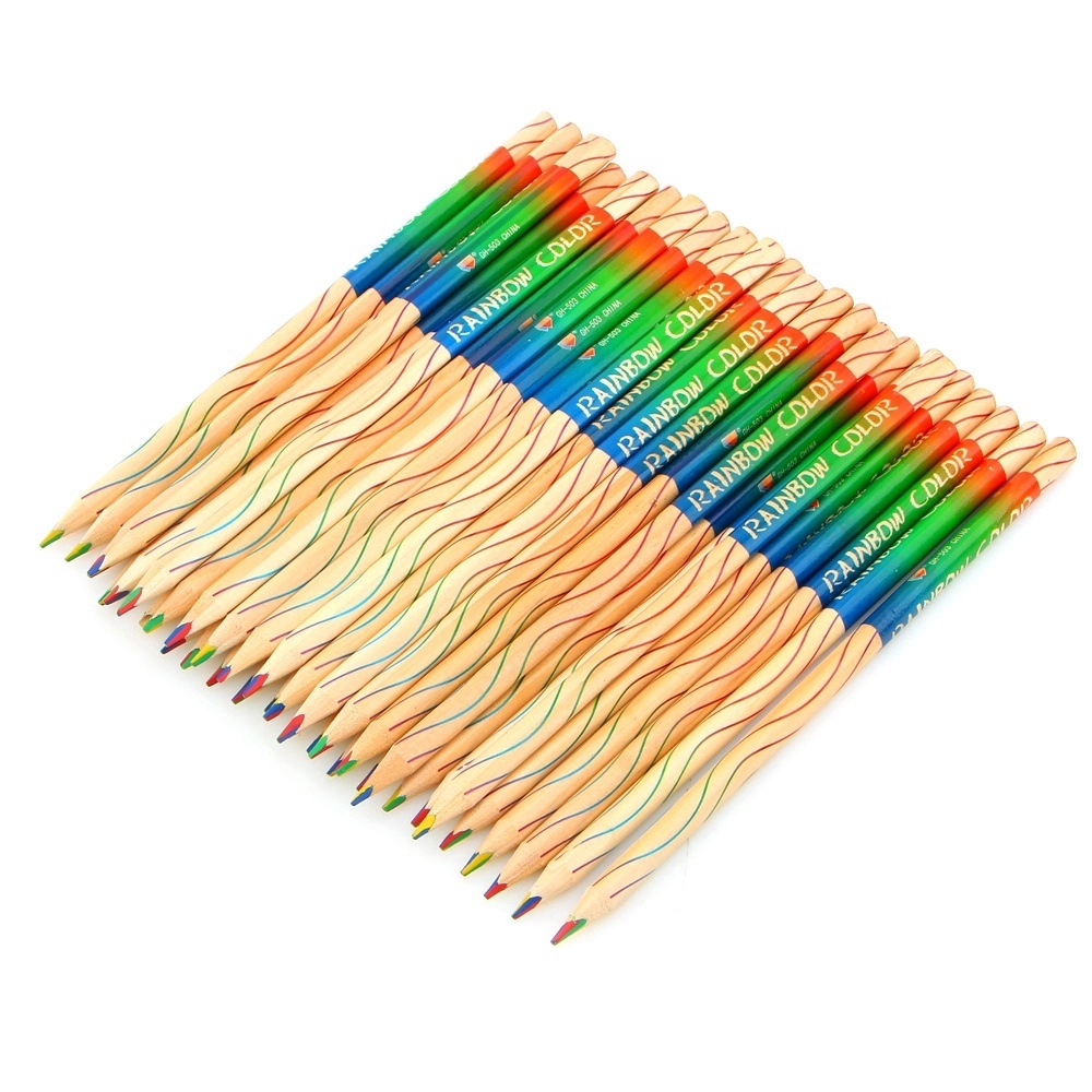 Bộ 10 cây bút chì màu vỏ gỗ họa tiết 7 sắc cầu vồng cho học sinh