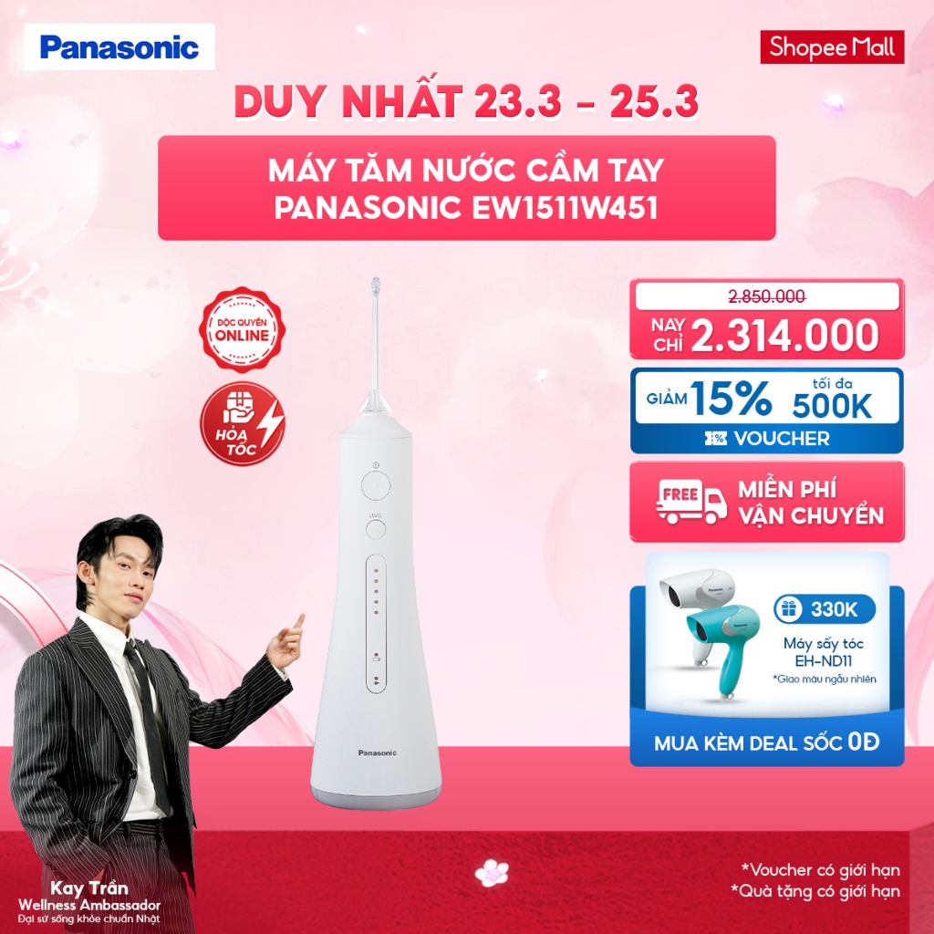 [ELPN500S GIẢM 15% TỐI ĐA 500K] Máy Tăm Nước Cầm Tay Panasonic Công Nghệ Siêu Âm EW1511 - Làm Sạch Răng Nướu
