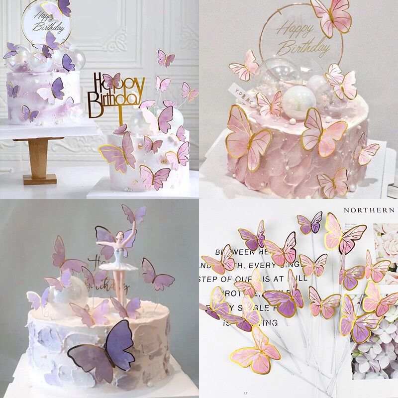Set 10 Con Bươm Bướm Trang Trí Bánh Ngọt / Nhãn Dán