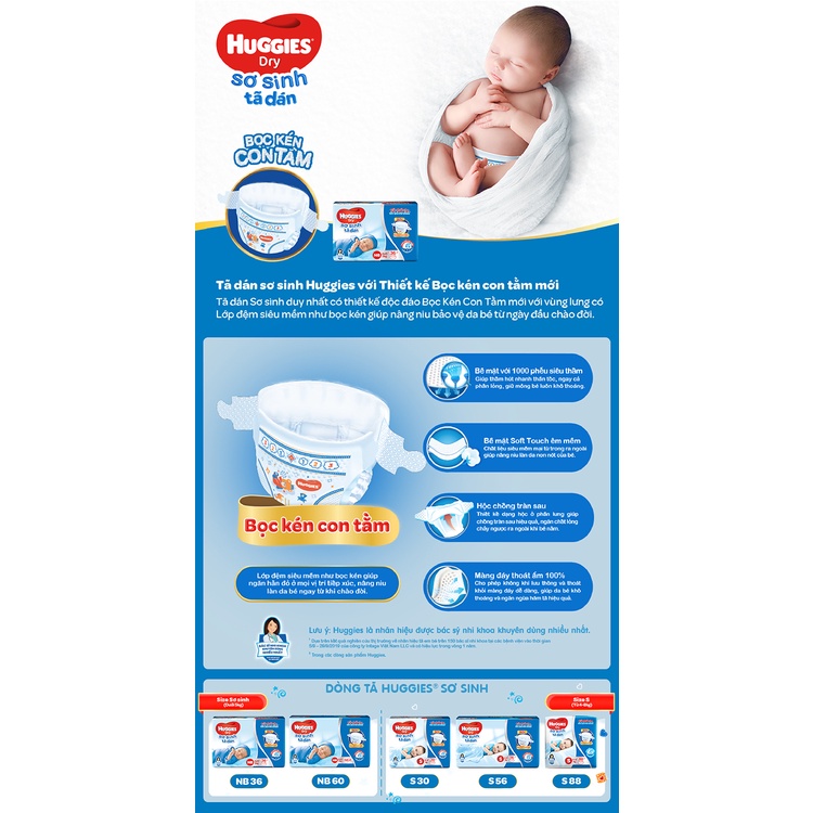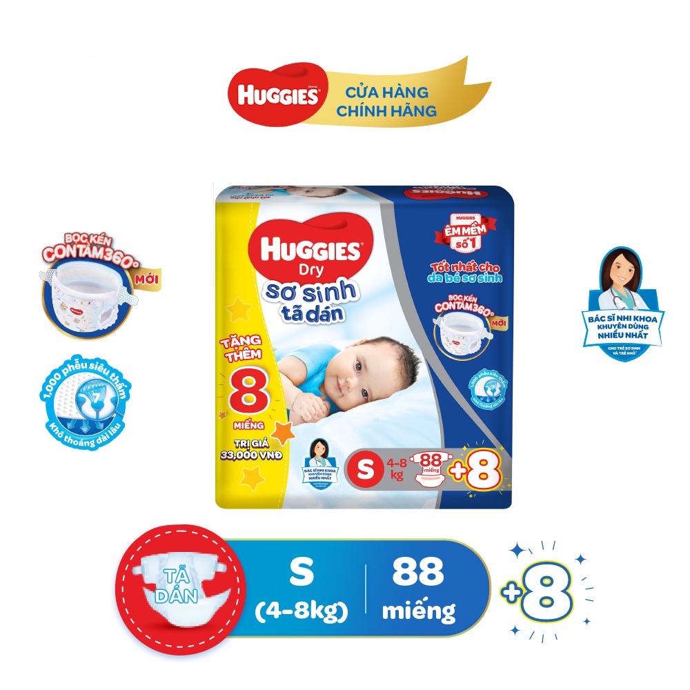 Tã Dán Sơ Sinh Huggies S88 (88 Miếng) - Tặng 8 miếng - (04kg - 8kg)