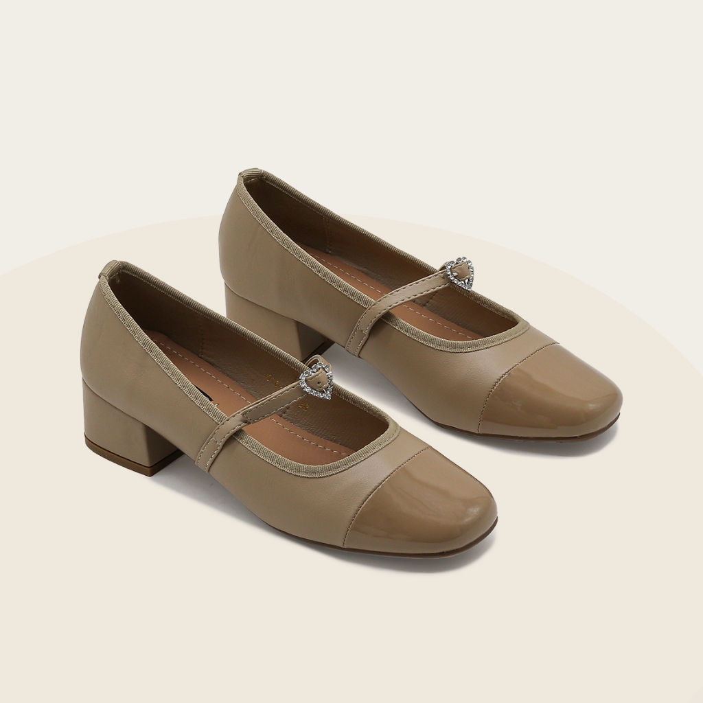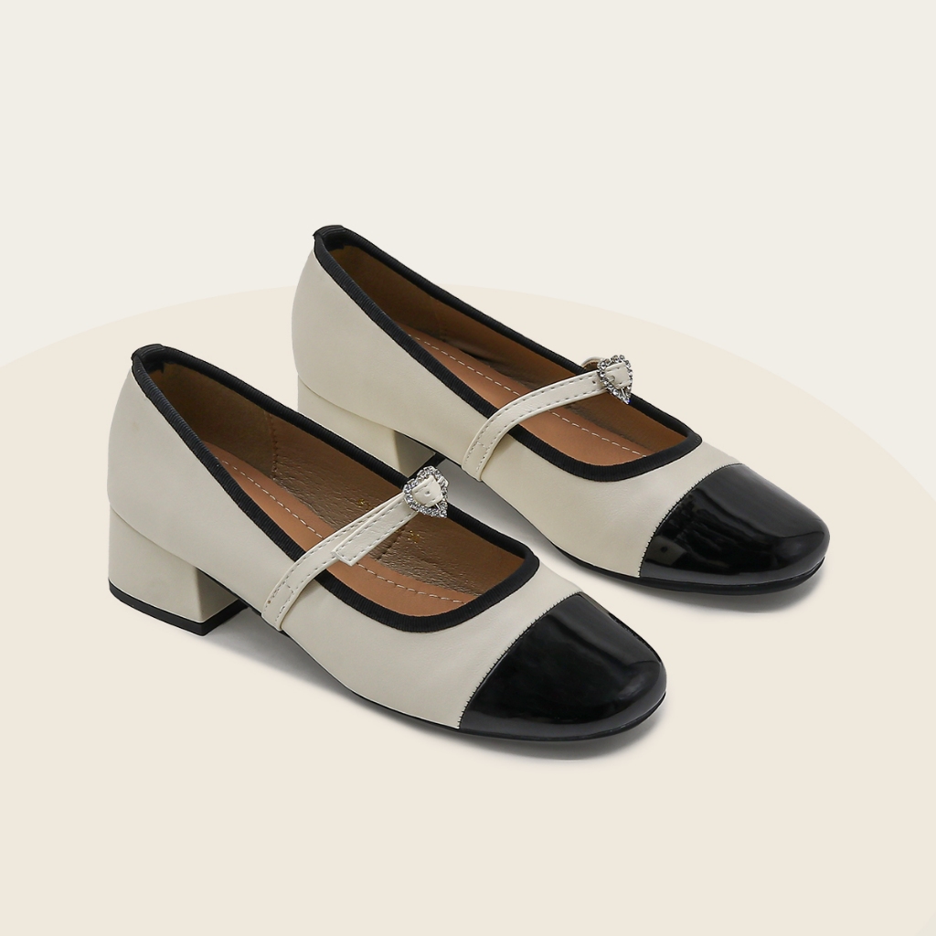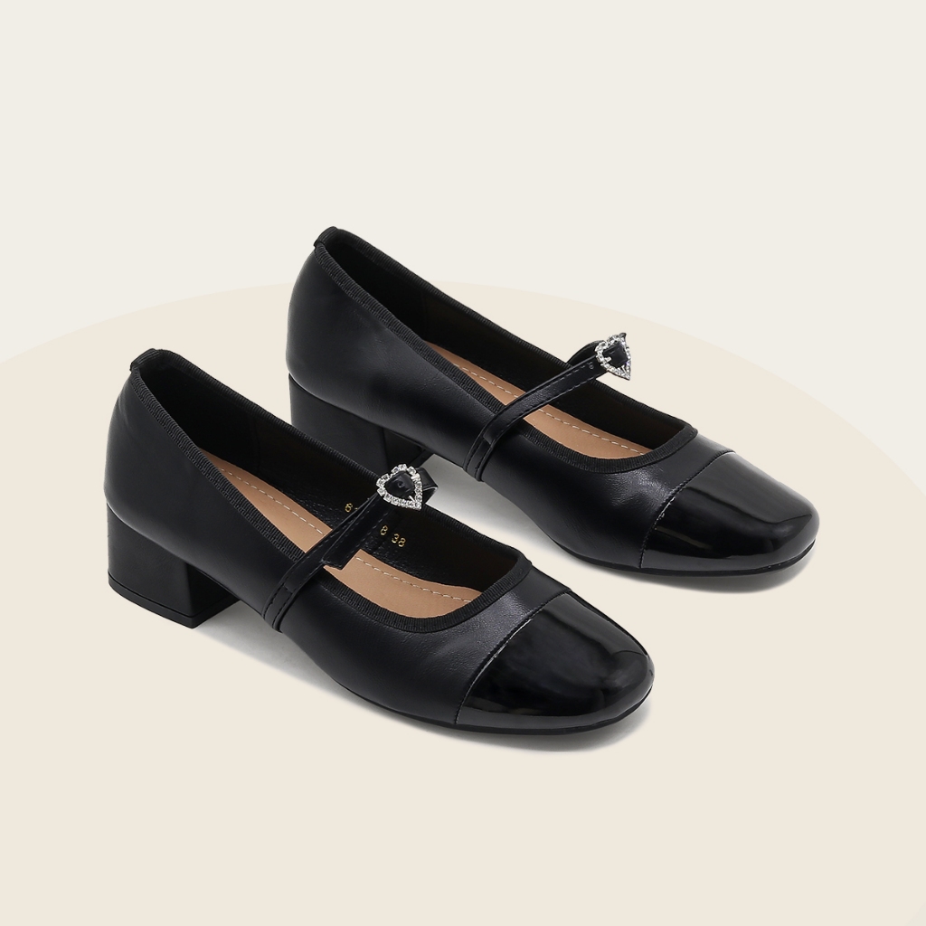 Giày búp bê nữ Mary Jane cao gót 3p quai nơ trái tim MS0006