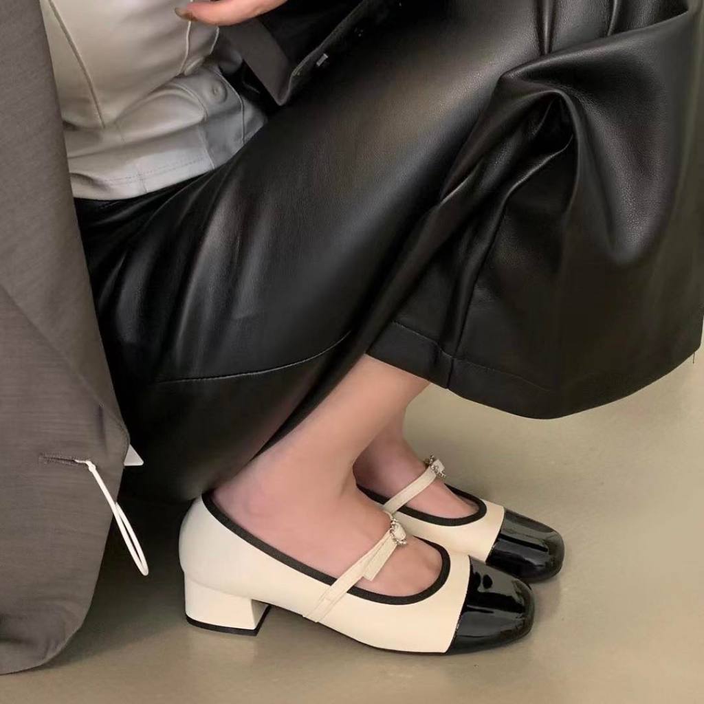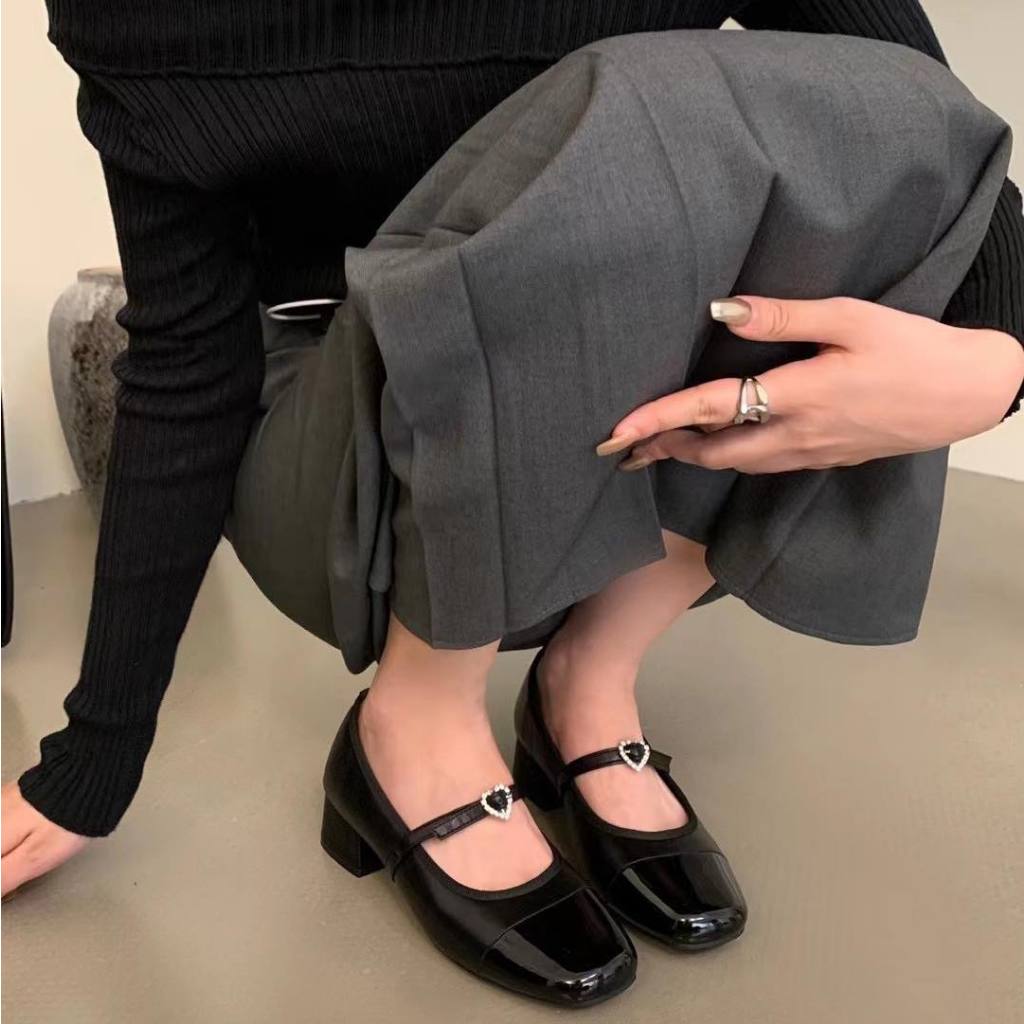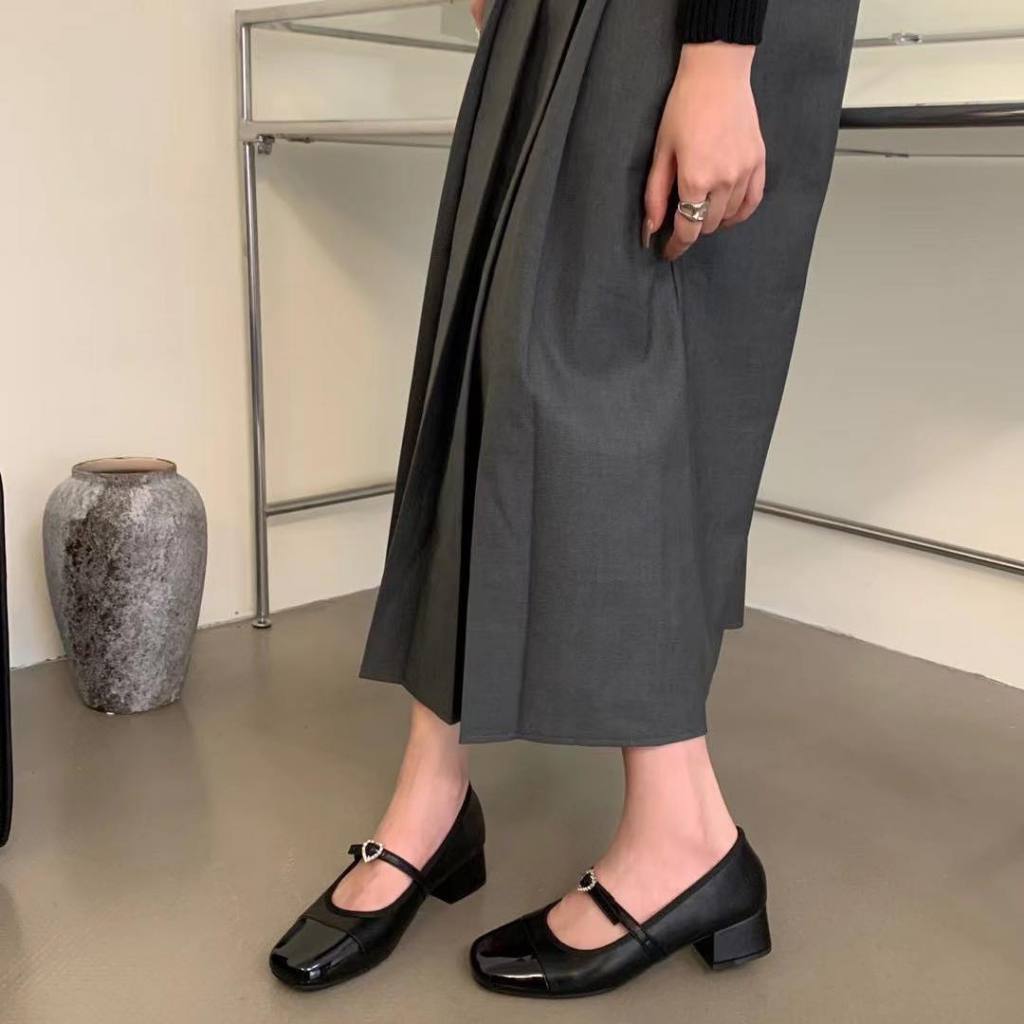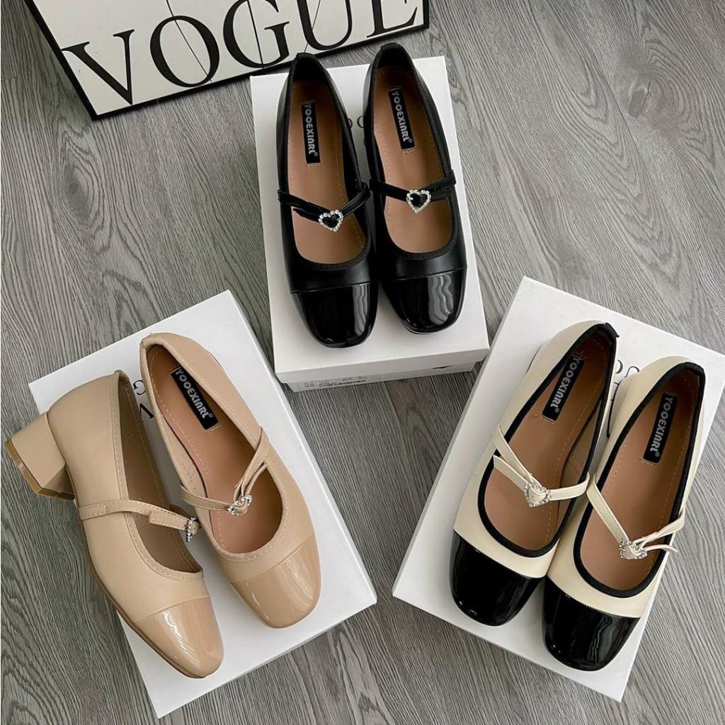 Giày búp bê nữ Mary Jane cao gót 3p quai nơ trái tim MS0006