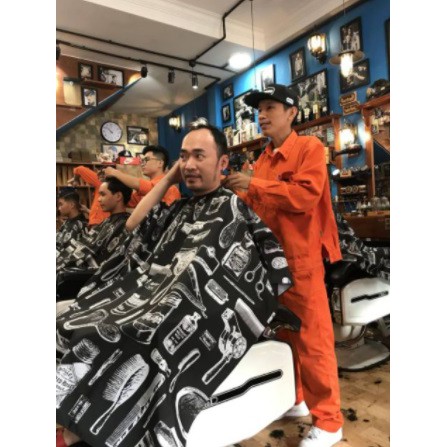 Áo Choàng Cắt Tóc Barber Shop Khổ 140x120cm, Khăn Choàng Cắt Tóc Nam Đen Mẫu Đồ Nghề Tóc.(Ảnh thật)