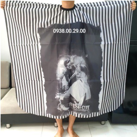 Khăn Choàng Cắt Tóc Nam Mẫu Trắng Đen Loại Tốt, Áo Choàng Cắt Tóc Nam Barber Khổ 1M6 x 1M4.(Ảnh thật)