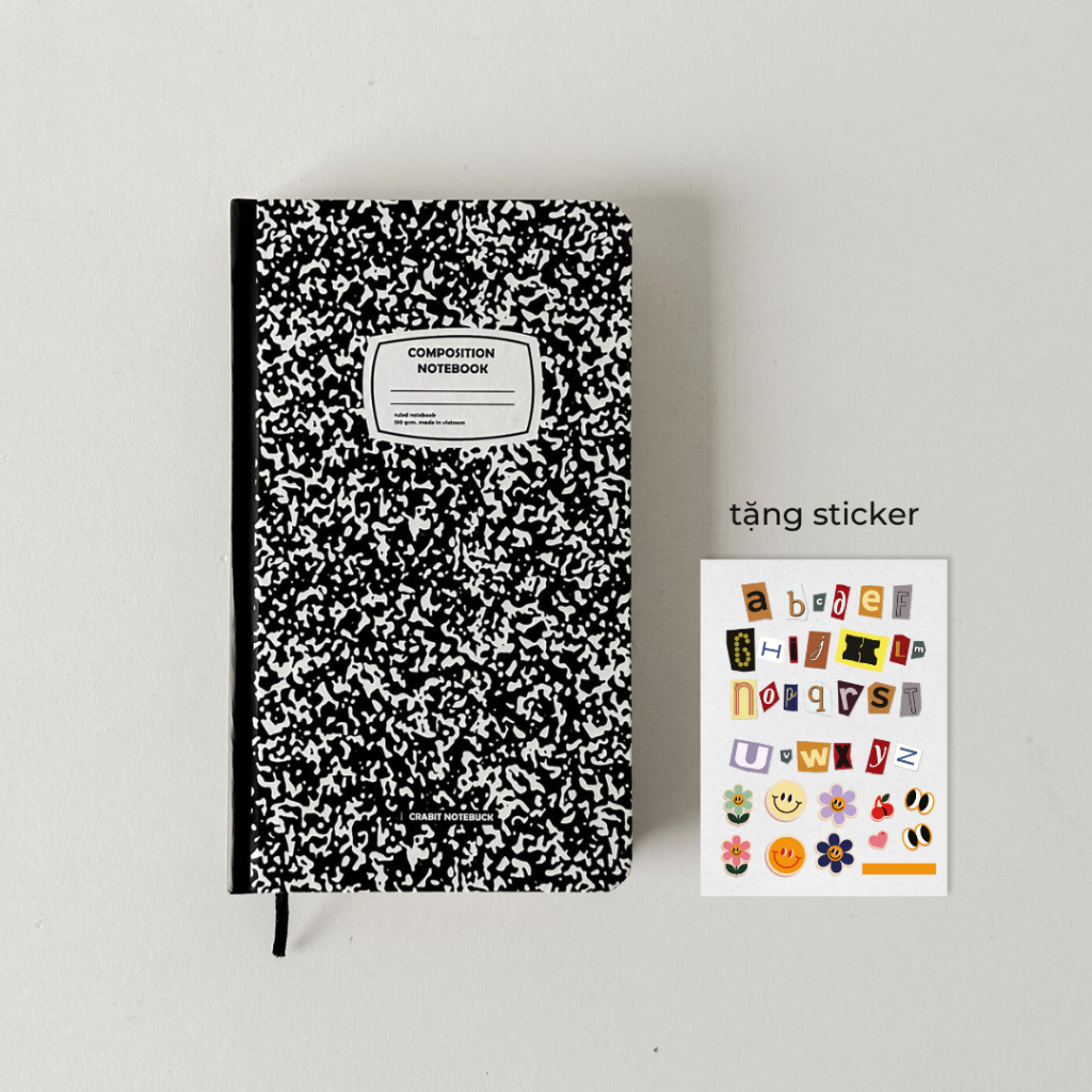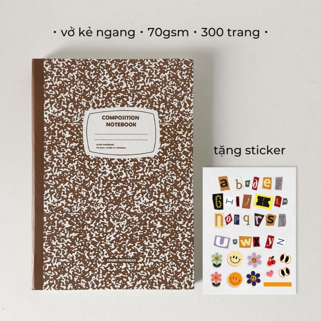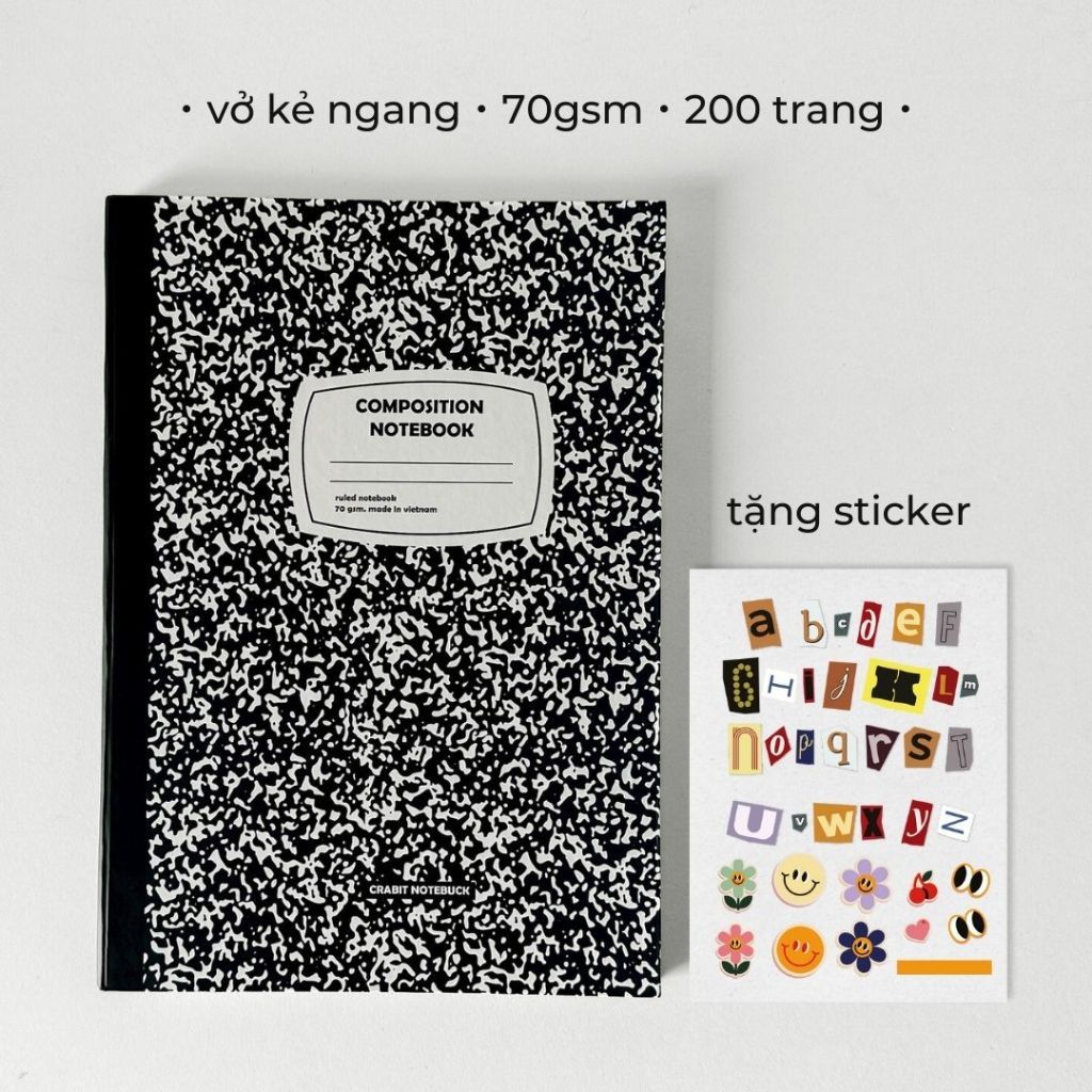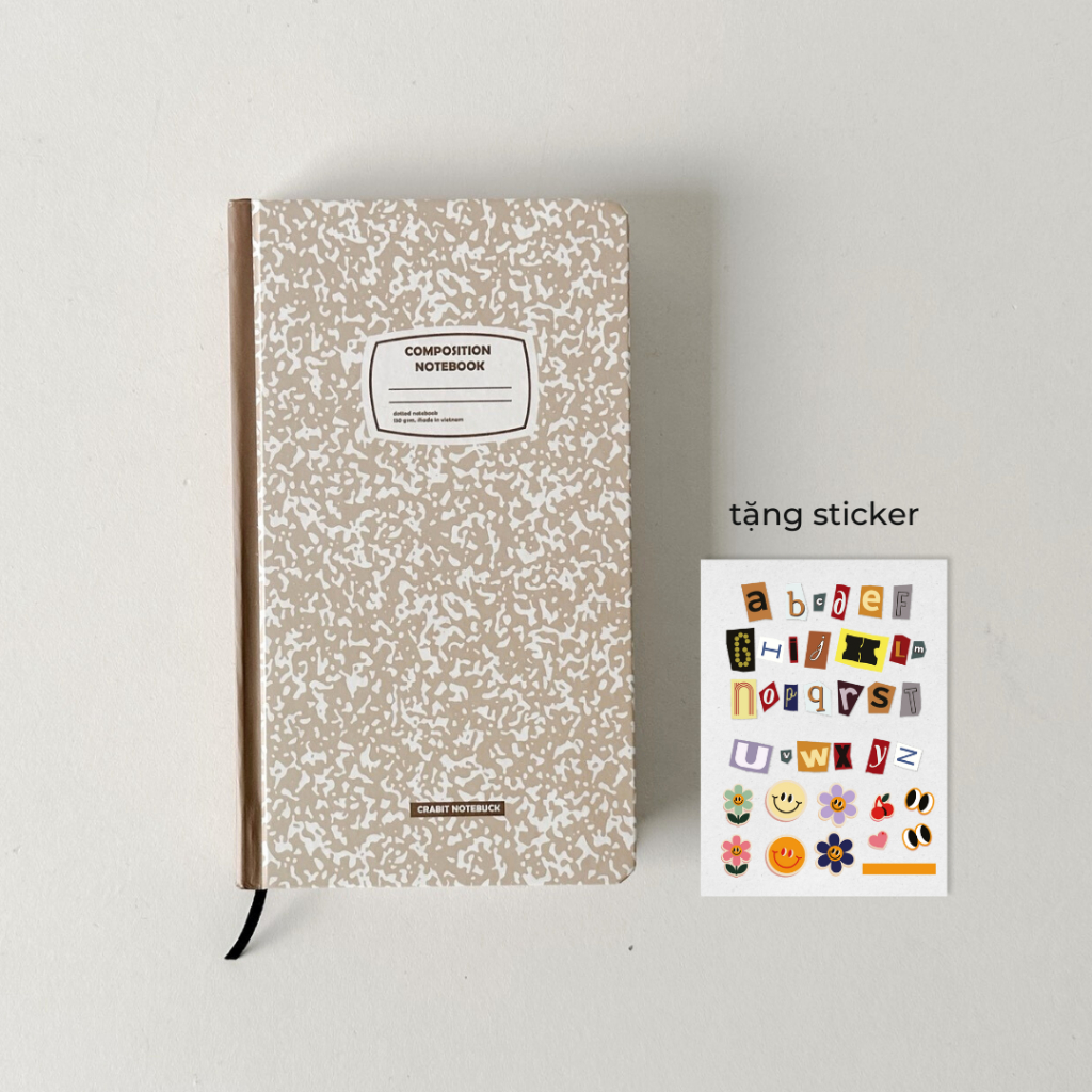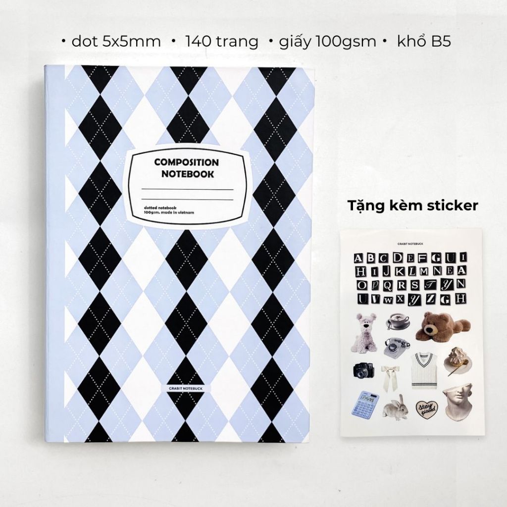 Sổ tay vở 200 300 500 trang kẻ ngang dot grid khổ vuông tặng kèm sticker Crabit Composition