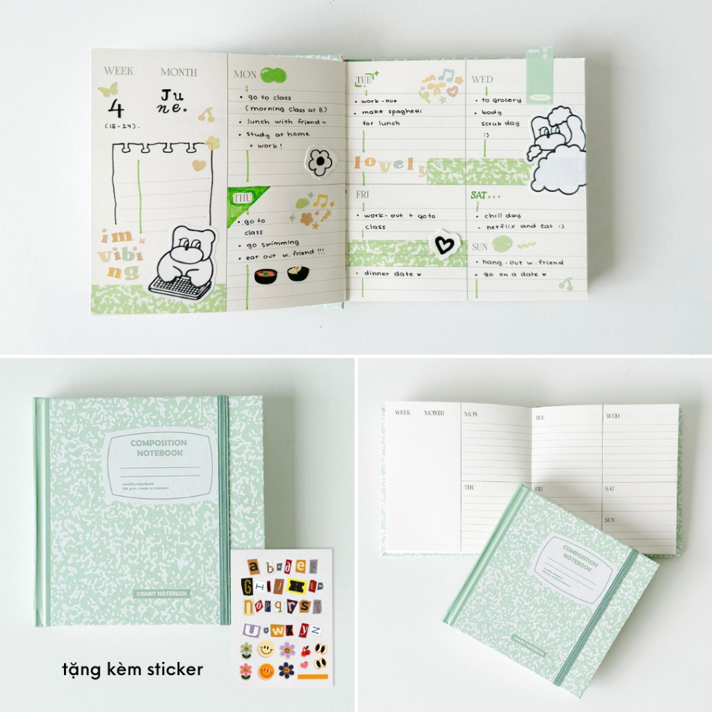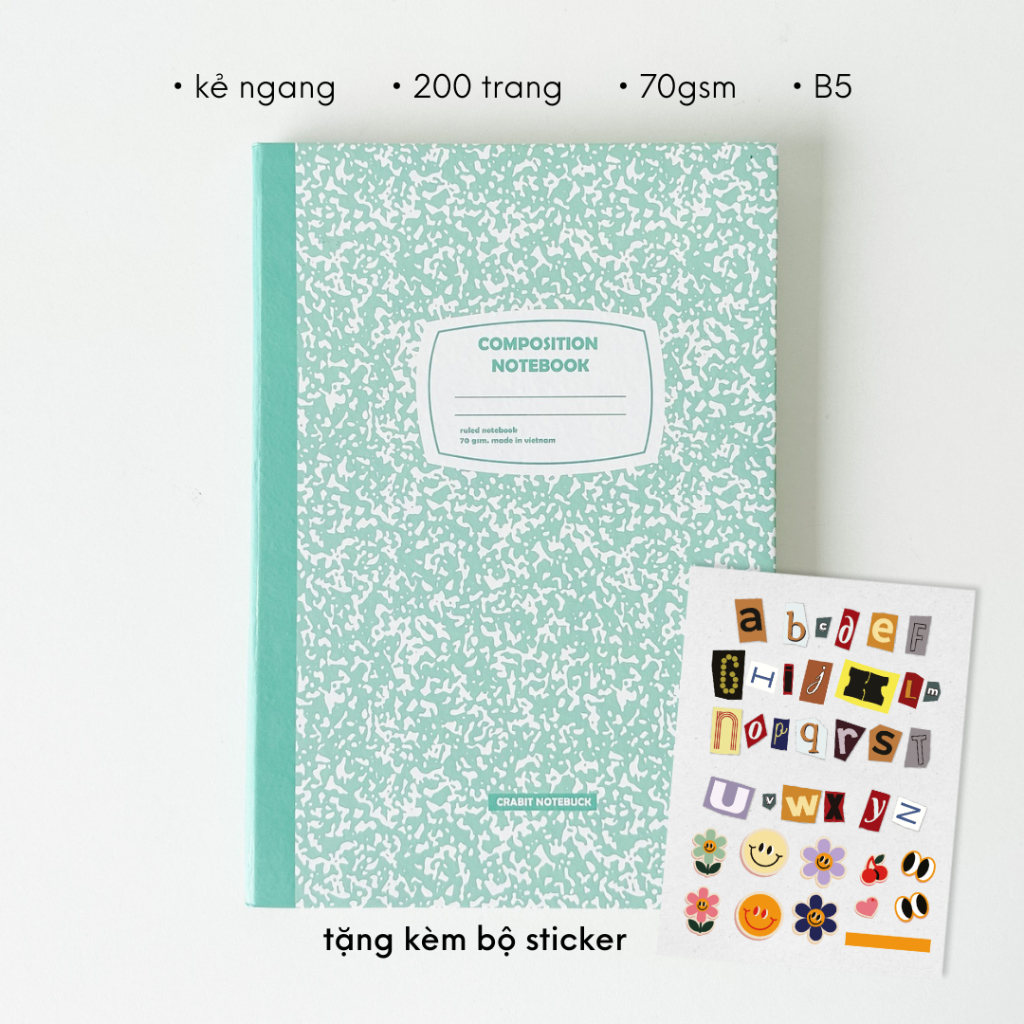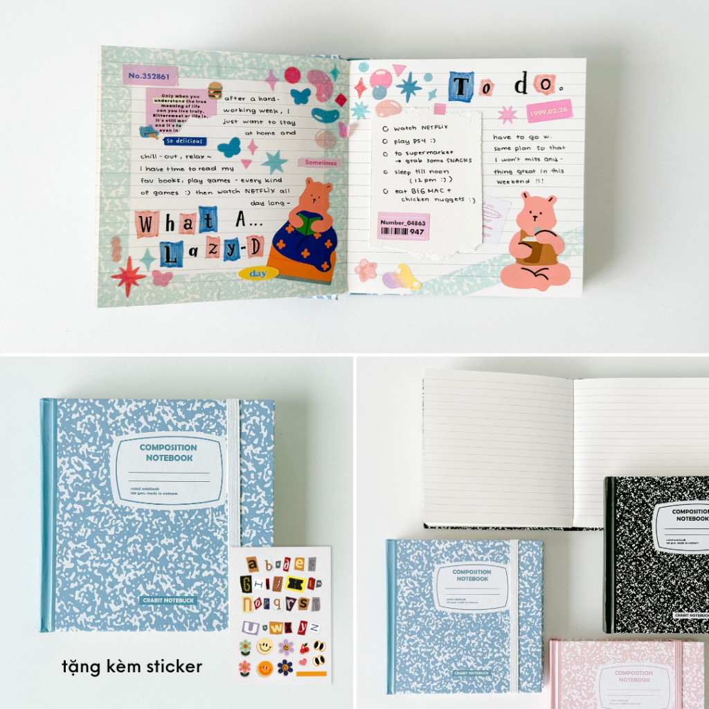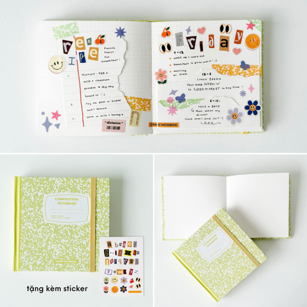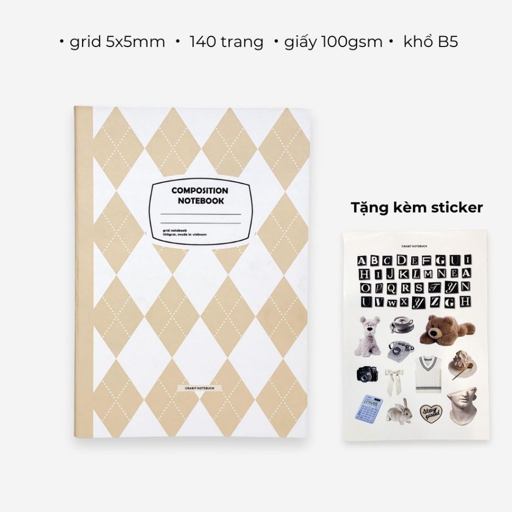 Sổ tay vở 200 300 500 trang kẻ ngang dot grid khổ vuông tặng kèm sticker Crabit Composition