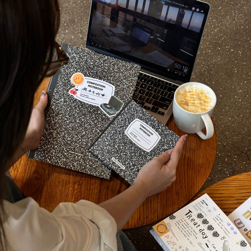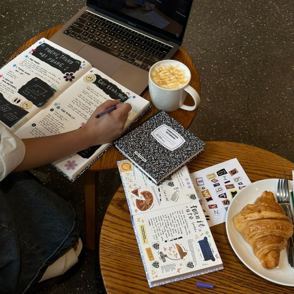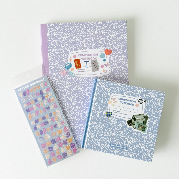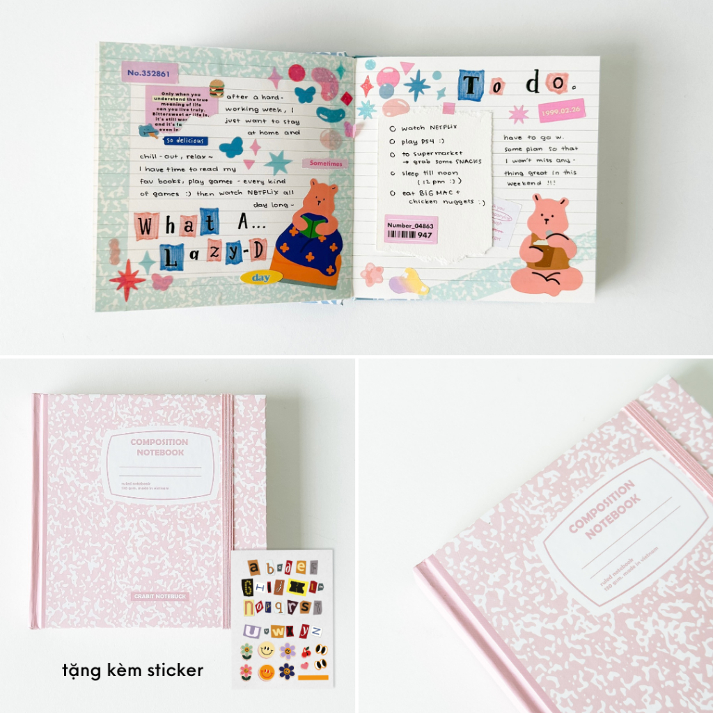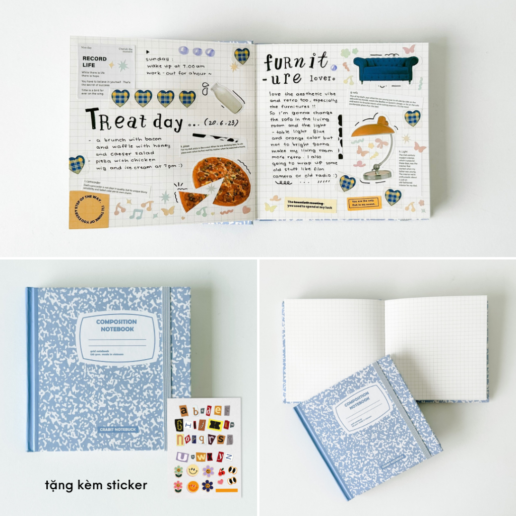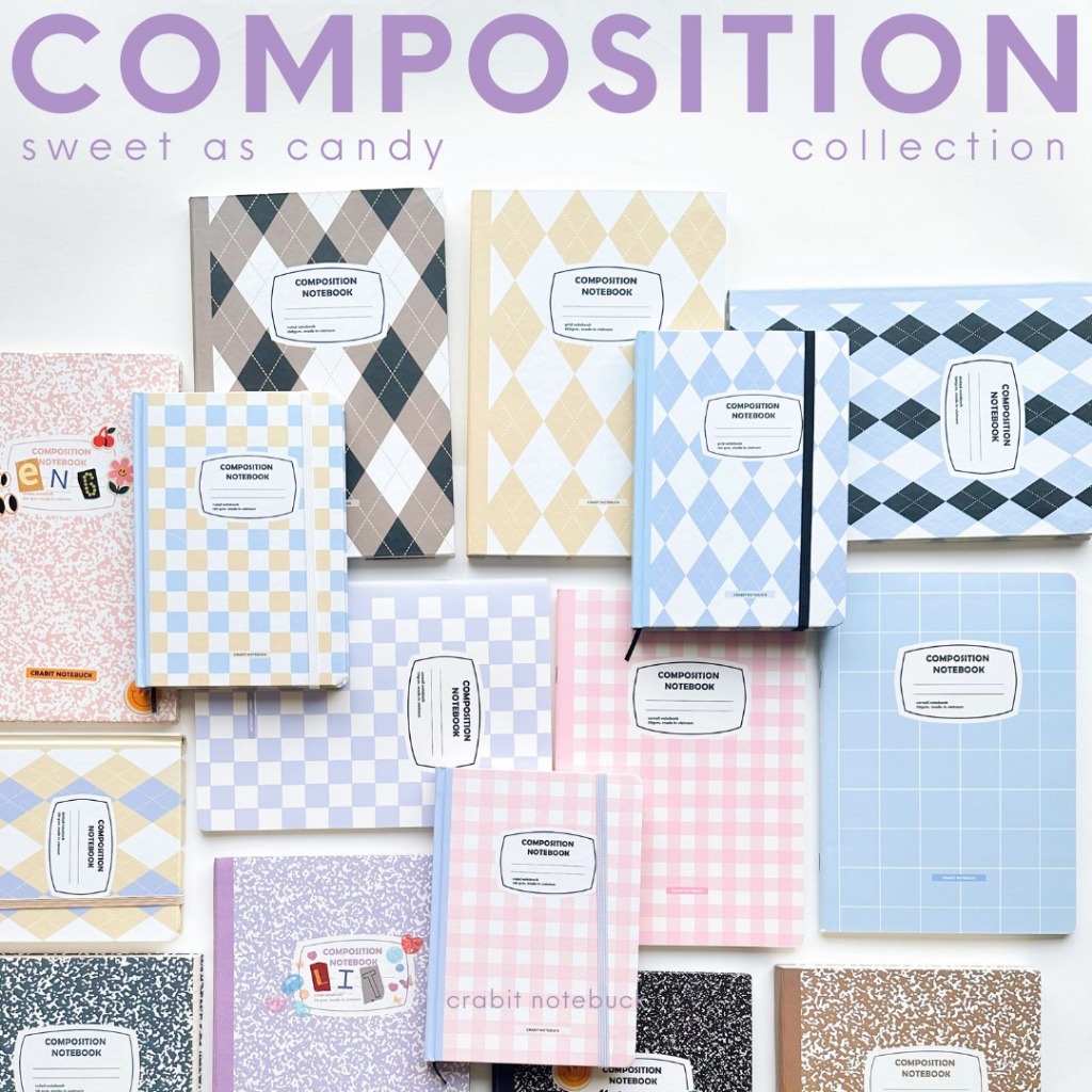 Sổ tay vở 200 300 500 trang kẻ ngang dot grid khổ vuông tặng kèm sticker Crabit Composition