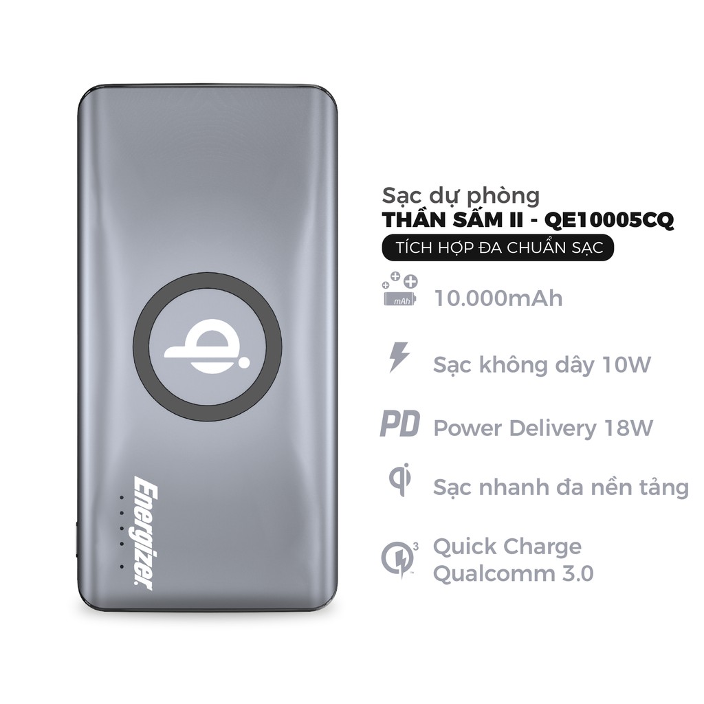 Combo Sạc dự phòng Energizer 10,000mAh QE10005CQ - sạc Mophie 18w - Cáp C to Lightning 1M - Hàng Chính Hãng