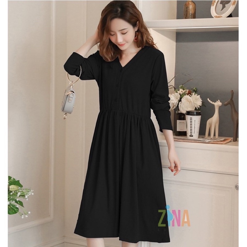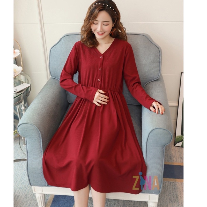 Đầm bầu len tăm cổ V cúc thật măc bầu và sau sinh
