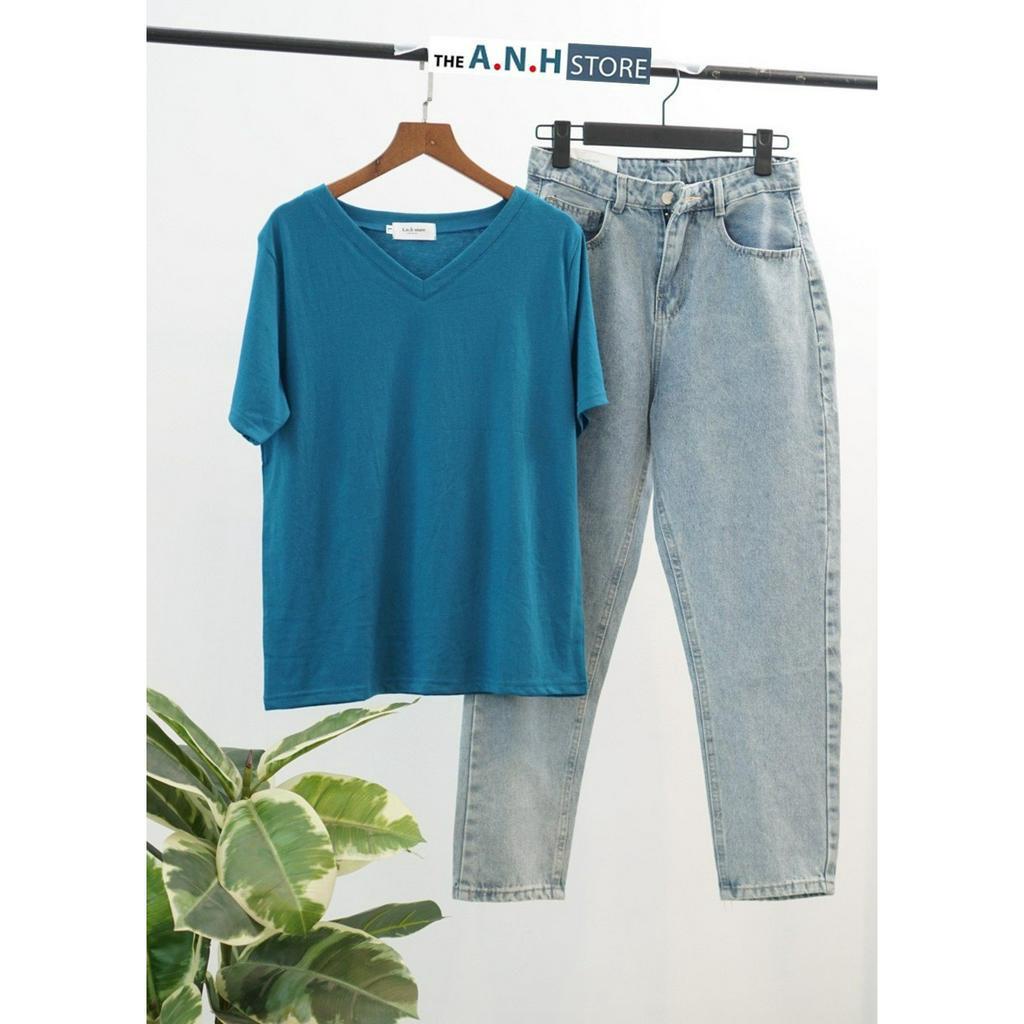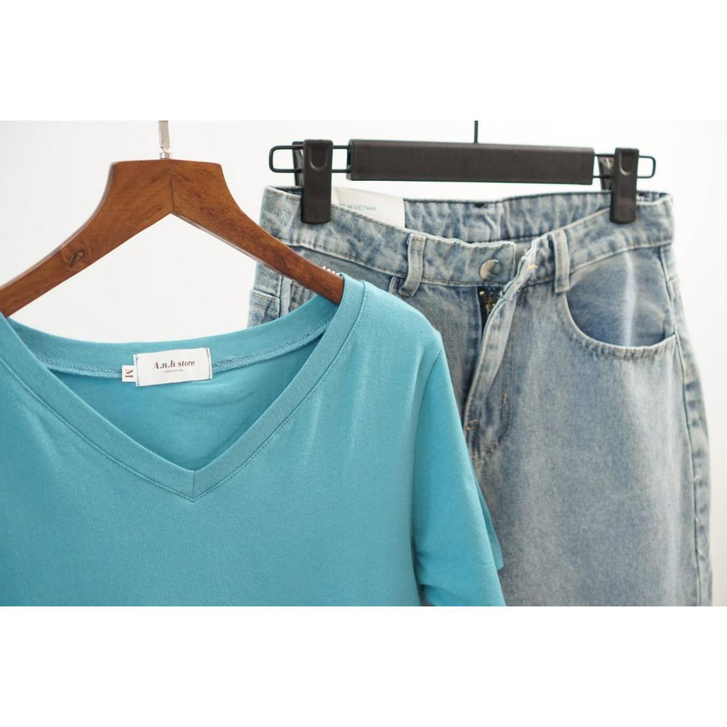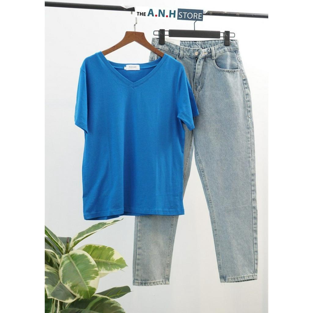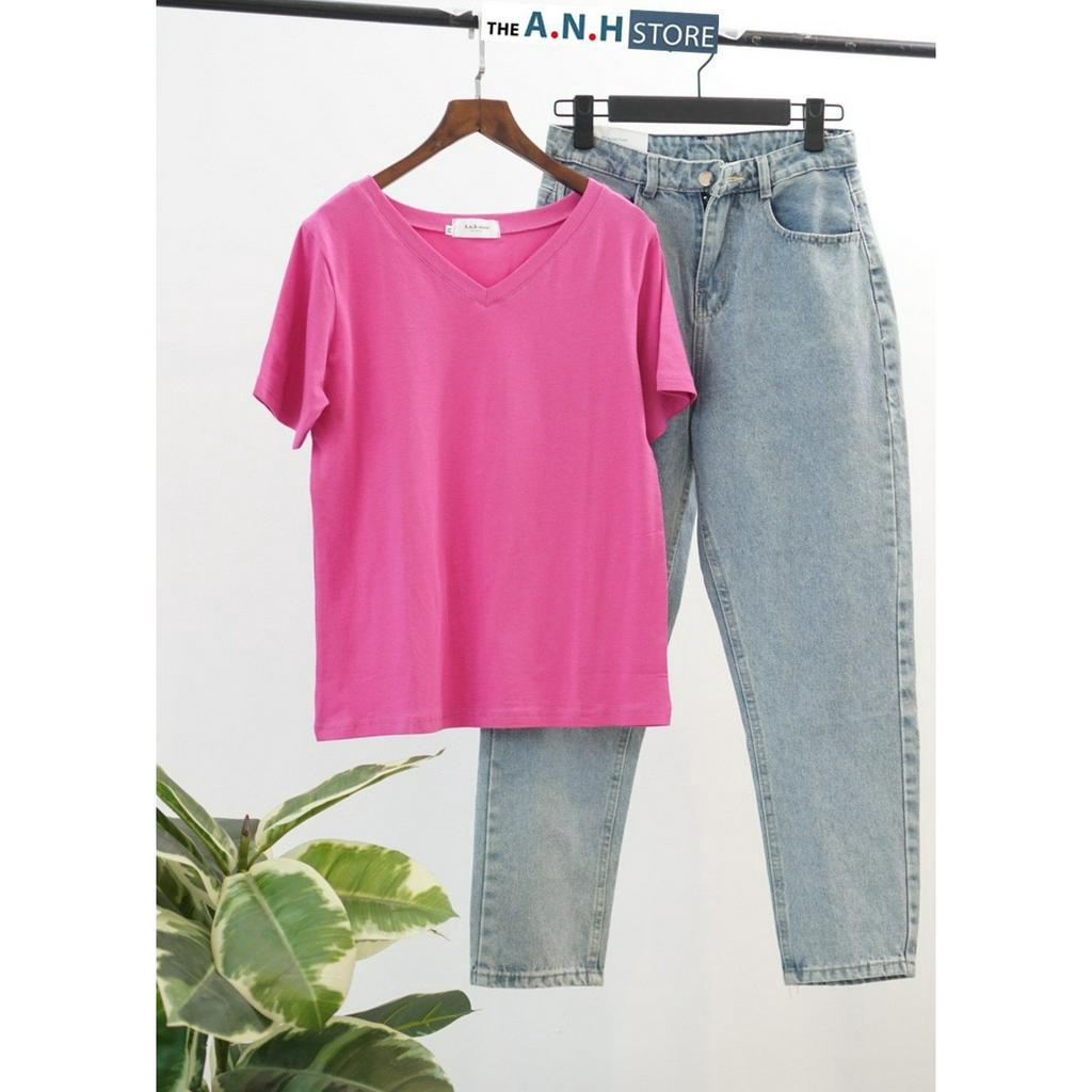 (SALE LẺ SIZE)Áo thun nữ cổ tim chất COTTON phom suông nhẹ basic ANHSTORE , áo thun cổ V chất cotton trơn thời trang