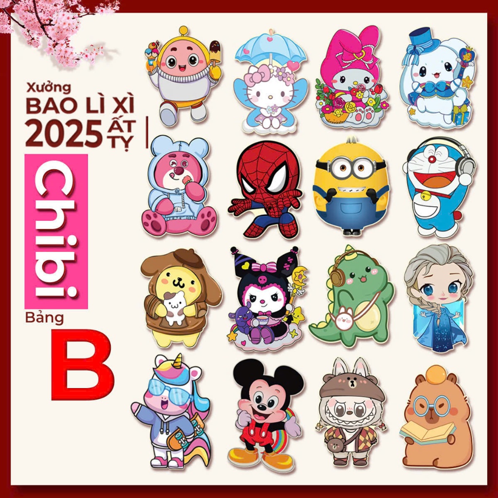 Combo 50 bao lì xì chipi hoạt hình tết lì xì chibi mẫu mới đẹp dễ thương
